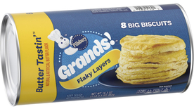 Make weeknight dinner sides grand with the home-baked goodness of Pillsbury Grands! Southern Homestyle Original Biscuits. Our tasty biscuits bake up bigger, compared to our prior recipe. Created for the biscuit lover, each just baked Grands! biscuit has a mouthwatering crispy outside and fluffy inside. A convenient alternative to scratch baking, Grands! refrigerated biscuit dough is ready to bake. In just minutes, the air will be filled with the delicious aroma of baked biscuits for you to serve as part of a sandwich, with gravy, butter, or more. To prepare them, simply follow package directions to preheat the oven, place biscuit dough on an ungreased cookie sheet, and bake until golden brown. In just a few simple steps, you'll have delicious biscuits without all the fuss. Makes eight big biscuits. At Pillsbury, we strive to make moments extra special through our products and recipes, providing convenient solutions for even the busiest families on the go.