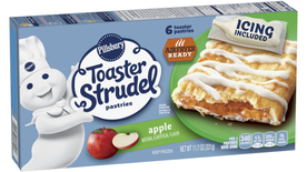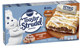 Taste this sweet way to top any morning! Pillsbury Cinnamon Roll Toaster Strudel Pastries are a quick and irresistible part of any breakfast. Every warm bite brings together the iconic combination of flaky pastry crust, cinnamon roll flavored filling, and creamy icing. Toaster Strudel Pastries make a great-tasting breakfast option for even your busiest days. Keep these toaster pastries in the freezer until you're ready to pop 'em into the toaster or air fryer. Then follow the simple steps on the package to heat, add icing, and enjoy. Ready in minutes with no fuss, Toaster Strudel pastries are an easy, quick bite that's perfect on the way to work or school. At Pillsbury, we strive to make home baked moments extra special through our products and recipes, which help make cooking and baking easy and convenient for even the busiest families. Contains one cardboard carton of Frozen Pillsbury Toaster Strudel Pastries, Cinnamon Roll, 12 Ct, 23.4 oz; an instant delicious snack after toasting.