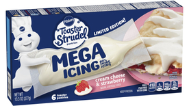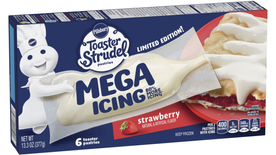 Taste this sweet way to top any morning! Pillsbury Raspberry Toaster Strudel Pastries are a quick and irresistible part of any breakfast. Every warm bite brings together the iconic combination of flaky pastry crust, raspberry flavored filling, and creamy icing. Toaster Strudel Pastries make a great-tasting breakfast option for even your busiest days. Keep these toaster pastries in the freezer until you're ready to pop 'em into the toaster or air fryer. Then follow the simple steps on the package to heat, add icing, and enjoy. Ready in minutes with no fuss, Toaster Strudel pastries are an easy, quick bite that's perfect on the way to work or school. At Pillsbury, we strive to make home baked moments extra special through our products and recipes, which help make cooking and baking easy and convenient for even the busiest families. Contains one cardboard carton of Frozen Pillsbury Toaster Strudel Pastries, Raspberry, 6 Ct, 11.7 oz; an instant delicious snack after toasting.