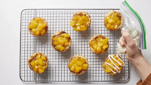 var configuration = {"title":"2-Ingredient Peach Pie Cups","introduction":"\u003cp\u003eWhen you need a delicious, easy dessert, this recipe truly delivers. With only two ingredients, this peach pie cups recipe gives you all the flavor and coziness of a good pie—without the hassle! Assemble in minutes with pantry staples, and have a warm, family-friendly dessert in no time at all. This recipe is perfect for parties, game day, holiday gatherings, kids in the kitchen, or as a just-because treat!\u003c/p\u003e","servingSize":" 1 Pie Cup","image":{"small":{"media":"(min-width: 0px)","src":"https://mojo.generalmills.com/api/public/content/fykKasc9SDmrQUOZ4zrNig_webp_base.webp?v=3f0ed197\u0026t=e724eca7b3c24a8aaa6e089ed9e611fd"},"medium":{"media":"(min-width: 500px)","src":"https://mojo.generalmills.com/api/public/content/fykKasc9SDmrQUOZ4zrNig_webp_base.webp?v=3f0ed197\u0026t=191ddcab8d1c415fa10fa00a14351227"},"large":{"media":"(min-width: 767px)","src":"https://mojo.generalmills.com/api/public/content/fykKasc9SDmrQUOZ4zrNig_webp_base.webp?v=3f0ed197\u0026t=191ddcab8d1c415fa10fa00a14351227"},"alt":"2-Ingredient Peach Pie Cups"},"contributor":{"label":"By","name":"Edited by Joanna","profileUrl":"/about-us/joanna","displayDate":{"label":"Updated","date":"Jan 20, 2026"}},"ingredientGroups":[{"ingredients":[{"quantity":"1","description":"can (12.4 oz) refrigerated Pillsbury™ Cinnamon Rolls with Cream Cheese Icing (8 Count)","productLink":"/products/cinnamon-rolls/cinnamon-rolls-with-cream-cheese-icing"},{"quantity":"1 1/3","description":"cups peach pie filling \u0026 topping (from 21-oz can), coarsely chopped"}]}],"steps":[{"description":"\u003cp\u003eHeat oven to 375°F. Spray 8 regular-size muffin cups with cooking spray.\u003c/p\u003e","stepShotImageUrl":"//mojo.generalmills.com/api/public/content/CjZiHu3hS_iIEKK18Yhakg_webp_base.webp?v=f31e3058\u0026t=51a43a57af4046789e5a7f20567b1195"},{"description":"\u003cp\u003eSeparate dough into 8 rolls and let stand 10 minutes; set icing aside. Place rolls cinnamon-side-up into muffin cups. Press in bottoms and up sides of cups.\u003c/p\u003e","stepShotImageUrl":"//mojo.generalmills.com/api/public/content/lsvGoB2oSwe56EZS7bnvmw_webp_base.webp?v=16aacacb\u0026t=51a43a57af4046789e5a7f20567b1195"},{"description":"\u003cp\u003eSpoon 2 generous tablespoons of pie filling into each dough-lined cup. Bake 14 to 18 minutes or until golden brown; cool in pan 5 minutes.\u003c/p\u003e","stepShotImageUrl":"//mojo.generalmills.com/api/public/content/gKAfPemcQpWT5M1dzfFE6w_webp_base.webp?v=f121adca\u0026t=51a43a57af4046789e5a7f20567b1195"},{"description":"\u003cp\u003eUsing a thin metal spatula, run around edges of cups to loosen; remove to serving plate. Transfer icing to small resealable food-storage plastic bag, and cut a small corner off one end. Drizzle icing over rolls. Serve warm.\u003c/p\u003e","stepShotImageUrl":"//mojo.generalmills.com/api/public/content/WjEPzXa7Q66c-7iMV4-5vA_webp_base.webp?v=a61ed4e6\u0026t=51a43a57af4046789e5a7f20567b1195"}],"tips":[{"title":"","description":"Two ingredients, endless smiles! Warm cinnamon roll cups filled with juicy peaches and drizzled with icing—an easy, fun dessert for cozy nights.","category":"Rich Snippet","tipShots":[]},{"title":"","description":"\u003cp\u003eLet cinnamon roll dough stand at room temperature for 10 minutes to make pressing it into muffin cups easier.\u003c/p\u003e","category":"Techniques","tipShots":[]},{"title":"","description":"\u003cp\u003eTo make ahead of time: Assemble peach pie cups, then loosely cover and refrigerate up to 2 hours before baking.\u003c/p\u003e","category":"Do-Ahead","tipShots":[]},{"title":"","description":"\u003cp\u003eMake it your own! Try substituting your favorite fruit pie filling in place of peach.\u003c/p\u003e","category":"Substitution","tipShots":[]},{"title":"","description":"\u003cp\u003eThese 2-Ingredient Peach Pie Cups are best served warm.\u003c/p\u003e","category":"Serving Suggestions/Menu","tipShots":[]},{"title":"","description":"Kitchen Tested - 1/2019","category":"Kitchen Tested","tipShots":[]}],"kitchenTips":[{"title":"","description":"\u003cp\u003eLet cinnamon roll dough stand at room temperature for 10 minutes to make pressing it into muffin cups easier.\u003c/p\u003e","category":"Techniques","tipShots":[]},{"title":"","description":"\u003cp\u003eTo make ahead of time: Assemble peach pie cups, then loosely cover and refrigerate up to 2 hours before baking.\u003c/p\u003e","category":"Do-Ahead","tipShots":[]},{"title":"","description":"\u003cp\u003eMake it your own! Try substituting your favorite fruit pie filling in place of peach.\u003c/p\u003e","category":"Substitution","tipShots":[]},{"title":"","description":"\u003cp\u003eThese 2-Ingredient Peach Pie Cups are best served warm.\u003c/p\u003e","category":"Serving Suggestions/Menu","tipShots":[]}],"additionalContent":[{"title":"Recipe Ingredients","description":"\u003cp\u003eThis recipe lives up to its name by using only two ingredients! These simple, easy-to-find staples make this one of the simplest desserts to make—even if you have kiddos in the kitchen!\u003c/p\u003e\u003cp\u003e\u003cstrong\u003ePillsbury™ Cinnamon Rolls with Cream Cheese Icing\u003c/strong\u003e: This dough is full of cinnamon flavor, easy to use, and acts as a great base for the pie cups. It comes with icing as well, which is great for finishing this recipe!\u003c/p\u003e\u003cp\u003e\u003cstrong\u003ePeach Pie Filling \u0026amp; Topping\u003c/strong\u003e: Peach flavor mingles nicely with cinnamon, making it the perfect pie filling flavor for this creation. Using a pie filling that’s ready to bake saves on time and makes this a truly easy dessert!\u003c/p\u003e","category":"SEO Content_1","tipShots":[{"name":"ExtraTextTypeImageMediumUrl","sortOrder":1,"url":"//mojo.generalmills.com/api/public/content/9OVQYD_qRtiCB43wul4QfQ_webp_base.webp?v=22b8c6f5\u0026t=51a43a57af4046789e5a7f20567b1195"}]},{"title":"How to Make 2-Ing