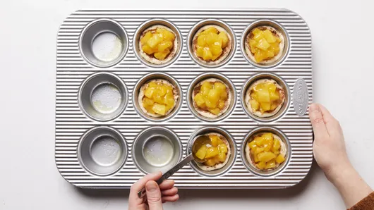 Spoon 2 generous tablespoons of pie filling into each dough-lined cup. Bake 14 to 18 minutes or until golden brown; cool in pan 5 minutes.