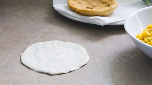 Step4Carefully fold fried biscuits in half to form taco shells; fill with chicken and corn mixture. If desired, top with additional taco toppings such as chopped fresh cilantro, shredded lettuce, diced tomatoes and sour cream. Serve immediately.
