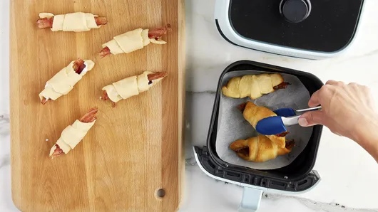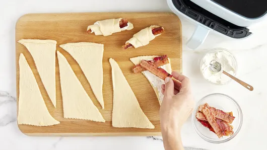 var configuration = {"title":"3-Ingredient Air Fryer Bacon-Cream Cheese Crescents","introduction":"Three ingredients and an air fryer are all you need to quickly prep these bacon-cream cheese crescents! This easy app idea comes together with minimal effort and never gets old. Pack Pillsbury™ Crescent Rolls with chive and onion cream cheese and crispy bacon, then cook the stuffed crescent rolls in an air fryer for a delightful dish that\u0027s sure to go fast!","servingSize":"1 Crescent","image":{"small":{"media":"(min-width: 0px)","src":"https://mojo.generalmills.com/api/public/content/bLtdE60AVkqYu7YRLhwyfw_webp_base.webp?v=b15e01d6\u0026t=e724eca7b3c24a8aaa6e089ed9e611fd"},"medium":{"media":"(min-width: 500px)","src":"https://mojo.generalmills.com/api/public/content/bLtdE60AVkqYu7YRLhwyfw_webp_base.webp?v=b15e01d6\u0026t=191ddcab8d1c415fa10fa00a14351227"},"large":{"media":"(min-width: 767px)","src":"https://mojo.generalmills.com/api/public/content/bLtdE60AVkqYu7YRLhwyfw_webp_base.webp?v=b15e01d6\u0026t=191ddcab8d1c415fa10fa00a14351227"},"alt":"3-Ingredient Air Fryer Bacon-Cream Cheese Crescents"},"contributor":{"label":"By","name":"Pillsbury Kitchens","profileUrl":"/about-us","displayDate":{"label":"Updated","date":"Oct 21, 2021"}},"ingredientGroups":[{"ingredients":[{"quantity":"1","description":"can (8 oz) refrigerated Pillsbury™ Original Crescent Rolls (8 Count)","productLink":"/products/crescents/original"},{"quantity":"1/3","description":"cup chive \u0026 onion cream cheese spread (from 8-oz container)"},{"quantity":"8","description":"slices cooked bacon, cut in half"}]}],"steps":[{"description":"Cut 8-inch round of cooking parchment paper. Place in bottom of air fryer basket."},{"description":"Unroll dough; separate into 8 triangles. Spoon and spread 2 teaspoons cream cheese spread onto each triangle. Top with 2 stacked bacon halves. Roll up, starting at shortest side and rolling to opposite point. Place 3 to 4 crescents on parchment paper in air fryer basket point side down, spacing apart.","stepShotImageUrl":"//mojo.generalmills.com/api/public/content/qULYBtVJFE67ofBBdnra_g_webp_base.webp?v=1764dc67\u0026t=51a43a57af4046789e5a7f20567b1195"},{"description":"Set air fryer to 325°F; cook 6 to 7 minutes or until crescent tops are light brown. With tongs, turn over each one; cook 2 to 3 minutes or until golden brown and cooked through. Remove from air fryer. Repeat with remaining crescents.","stepShotImageUrl":"//mojo.generalmills.com/api/public/content/Z114X7mbl0aUd9dmzWuNXA_webp_base.webp?v=897cc037\u0026t=51a43a57af4046789e5a7f20567b1195"}],"tips":[{"title":"","description":"Air fryer temperature control settings vary according to brand and model. If your air fryer does not have the exact temperature setting called for in the recipe, consult your manual for suggested temperature settings.","category":"Method Note","tipShots":[]},{"title":"","description":"Our recipes do not call for preheating your air fryer. Just set the temperature, and start. Never preheat with parchment paper alone.","category":"Method Note","tipShots":[]},{"title":"","description":"Making the crescents in batches gives enough space for each one to cook without touching, so each crescent can cook through to golden brown goodness. Be sure to cook them in a single layer, spacing apart, and with enough room to turn them over. If you have a smaller air fryer, cook in more batches; if you have a large air fryer, cook in fewer batches.","category":"Method Note","tipShots":[]},{"title":"","description":"Kitchen Tested - 8/2021.","category":"Kitchen Tested","tipShots":[]}],"kitchenTips":[{"title":"","description":"Air fryer temperature control settings vary according to brand and model. If your air fryer does not have the exact temperature setting called for in the recipe, consult your manual for suggested temperature settings.","category":"Method Note","tipShots":[]},{"title":"","description":"Our recipes do not call for preheating your air fryer. Just set the temperature, and start. Never preheat with parchment paper alone.","category":"Method Note","tipShots":[]},{"title":"","description":"Making the crescents in batches gives enough space for each one to cook without touching, so each crescent can cook through to golden brown goodness. Be sure to cook them in a single layer, spacing apart, and with enough room to turn them over. If you have a smaller air fryer, cook in more batches; if you have a large air fryer, cook in fewer batches.","category":"Method Note","tipShots":[]}],"additionalContent":[],"faq":[],"tipCategories":[{"categoryName":"Kitchen Tested","heading":"More About This Recipe","cssClass":"recipePartStory","expandOnInit":false,"expandText":"More +","collapseText":"Less -","expandEventName":"","collapseEventName":"","image":"","tips":[{"title":"","description":"Kitchen Tested - 8/2021.","category":"Kitchen Tested","tipShots":[]}],"isExpandable":false},{"categoryName":"Method Note","heading":"","cssClass":"recipePartMethodNote","expandOnInit":false,"expandText":"More +","collapseText":"Less -","expandEventName":"","collapseEventName":"","image":"","tips":[{"title":"","description":"Air fryer temperature control settings vary according to brand and model. If your air fryer does not have the exact temperature setting called for in the recipe, consult your manual for suggested temperature settings.","category":"Method Note","tipShots":[]},{"title":"","description":"Our recipes do not call for preheating your air fryer. Just set the temperature, and start. Never preheat with parchment paper alone.","category":"Method Note","tipShots":[]},{"title":"","description":"Making the crescents in batches gives enough space for each one to cook without touching, so each crescent can cook through to golden brown goodness. Be sure to cook them in a single layer, spacing apart, and with enough room to turn them over. If you have a smaller air fryer, cook in more batches; if you have a large air fryer, cook in few