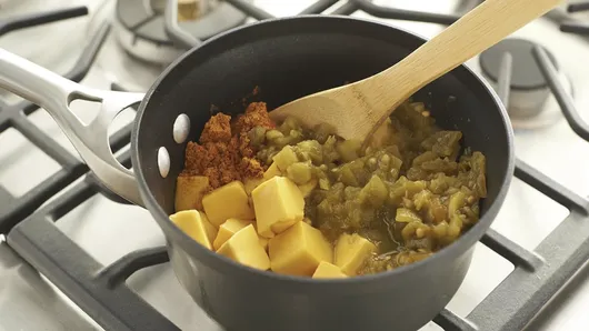 Step1In 2-quart saucepan, heat all ingredients over medium heat 5 to 7 minutes, stirring occasionally, until cheese is melted and mixture is hot. Serve immediately.