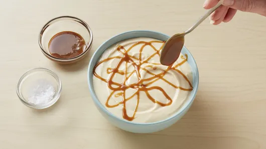 Step2Drizzle with remaining 1 tablespoon caramel topping, and sprinkle with sea salt before serving. Serve with your favorite sliced apples or apple chips. Store dip covered in refrigerator.