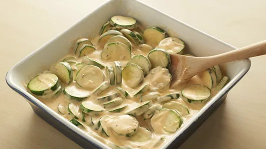 Step3In 12-inch nonstick skillet, melt remaining 1 tablespoon butter over medium-high heat. Add zucchini; cook 4 to 6 minutes, stirring occasionally, until crisp-tender. Spoon zucchini into baking dish.