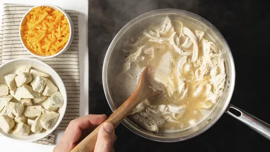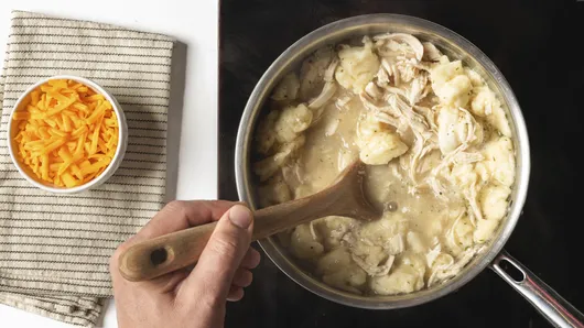 var configuration = {"title":"5-Ingredient Chicken and Dumplings for Two","introduction":"\u003cp\u003eA comfort-food meal for two is a rare treat. This recipe makes just enough chicken and dumplings for a cozy night in without too many leftovers in your fridge.\u003c/p\u003e\u003cp\u003ePillsbury™ Grands!™ Buttermilk Biscuits and Progresso™ Reduced Sodium Chicken Broth make this recipe simple and oh-so-delicious. Classic chicken and dumplings are comforting for many people, and this recipe brings out the traditional flavors you know and love.\u003c/p\u003e\u003cp\u003eWhether you’re hosting a friend, have a 1-1 dinner with your kiddo, or are planning a date night with your sweetheart, this recipe is beloved by all.\u003c/p\u003e","servingSize":"1 Serving","image":{"small":{"media":"(min-width: 0px)","src":"https://mojo.generalmills.com/api/public/content/bIXMh-AmRvWTa8Zuc3WEBQ_webp_base.webp?v=4f79002c\u0026t=e724eca7b3c24a8aaa6e089ed9e611fd"},"medium":{"media":"(min-width: 500px)","src":"https://mojo.generalmills.com/api/public/content/bIXMh-AmRvWTa8Zuc3WEBQ_webp_base.webp?v=4f79002c\u0026t=191ddcab8d1c415fa10fa00a14351227"},"large":{"media":"(min-width: 767px)","src":"https://mojo.generalmills.com/api/public/content/bIXMh-AmRvWTa8Zuc3WEBQ_webp_base.webp?v=4f79002c\u0026t=191ddcab8d1c415fa10fa00a14351227"},"alt":"5-Ingredient Chicken and Dumplings for Two"},"contributor":{"label":"By","name":"Edited by Joanna","profileUrl":"/about-us/joanna","displayDate":{"label":"Updated","date":"Nov 4, 2025"}},"ingredientGroups":[{"ingredients":[{"quantity":"2","description":"cups Progresso™ Reduced Sodium Chicken Broth (from 32-oz carton)"},{"quantity":"1","description":"tablespoon ranch salad dressing \u0026 seasoning mix (from 1-oz package)"},{"quantity":"1/8","description":"teaspoon black pepper"},{"quantity":"1 1/2","description":"cups shredded cooked chicken"},{"quantity":"3","description":"biscuits from 1 bag (25 oz) frozen Pillsbury™ Grands!™ Buttermilk Biscuits (12 Count)","productLink":"/products/biscuits/grands-frozen-biscuits/buttermilk"},{"quantity":"1/2","description":"cup shredded cheddar cheese (2 oz)"}]}],"steps":[{"description":"\u003cp\u003eIn 1 1/2- or 2-quart saucepan, heat broth, ranch seasoning mix, pepper, and chicken to boiling.\u003c/p\u003e","stepShotImageUrl":"//mojo.generalmills.com/api/public/content/t7RyjHwGT1CfbjQOo54nSw_webp_base.webp?v=924bfcbd\u0026t=51a43a57af4046789e5a7f20567b1195"},{"description":"\u003cp\u003eCut each biscuit in half lengthwise, and cut each half into 4 pieces.\u003c/p\u003e","stepShotImageUrl":"//mojo.generalmills.com/api/public/content/LPPs5CNPSMSq0PK222TEpA_webp_base.webp?v=0b071280\u0026t=51a43a57af4046789e5a7f20567b1195"},{"description":"\u003cp\u003eAdd biscuit pieces to boiling mixture. Reduce heat to medium; simmer uncovered 5 to 7 minutes, stirring frequently, until dumplings are cooked through and mixture is slightly thickened.\u003c/p\u003e","stepShotImageUrl":"//mojo.generalmills.com/api/public/content/KxWjmCZWQY-PLrOV7zhICg_webp_base.webp?v=0cbabff9\u0026t=51a43a57af4046789e5a7f20567b1195"},{"description":"\u003cp\u003eStir in cheddar cheese until cheese melts. Serve immediately.\u003c/p\u003e","stepShotImageUrl":"//mojo.generalmills.com/api/public/content/XzrNi3dLTP-On9P3Z7UEEQ_webp_base.webp?v=2bf3976c\u0026t=51a43a57af4046789e5a7f20567b1195"}],"tips":[{"title":"","description":"A cozy, comforting chicken and dumplings recipe that’s perfectly portioned for two! Enjoy an evening in with this easy dinner recipe.","category":"Rich Snippet","tipShots":[]},{"title":"","description":"\u003cp\u003eLet biscuits stand at room temperature for 30 to 45 minutes to thaw.\u003c/p\u003e","category":"Recipe/Ingredient Facts","tipShots":[]},{"title":"","description":"\u003cp\u003eThis recipe makes 2 large servings. If desired, you can divide it into 3 or 4 smaller servings.\u003c/p\u003e","category":"Recipe/Ingredient Facts","tipShots":[]},{"title":"","description":"Kitchen Tested - 5/2017.","category":"Kitchen Tested","tipShots":[]}],"kitchenTips":[{"title":"","description":"\u003cp\u003eLet biscuits stand at room temperature for 30 to 45 minutes to thaw.\u003c/p\u003e","category":"Recipe/Ingredient Facts","tipShots":[]},{"title":"","description":"\u003cp\u003eThis recipe makes 2 large servings. If desired, you can divide it into 3 or 4 smaller servings.\u003c/p\u003e","category":"Recipe/Ingredient Facts","tipShots":[]}],"additionalContent":[{"title":"Recipe Ingredients","description":"\u003cp\u003eYour dinner for two comes together with a few simple, easy-to-find ingredients. This is what you’ll need:\u003c/p\u003e\u003cp\u003e\u003cstrong\u003ePillsbury™ Grands!™ Buttermilk Biscuits: \u003c/strong\u003eNot only are these biscuits flaky and full of flavor, they’re easy to work with, too. They make a great base for your dumplings.\u003c/p\u003e\u003cp\u003e\u003cstrong\u003eProgresso™ Reduced Sodium Chicken Broth: \u003c/strong\u003eThis pre-made broth is a simple choice for your dish. The reduced sodium version makes it easy to customize the saltiness to your taste.\u003c/p\u003e\u003cp\u003e\u003cstrong\u003eRanch Salad Dressing \u0026amp; Seasoning Mix: \u003c/strong\u003eRanch seasoning works perfectly in this dish. With garlic, onion, dill, parsley, and chives, ranch seasoning helps you to flavor your dish without requiring too many individual spices in your cupboard.\u003c/p\u003e\u003cp\u003e\u003cstrong\u003eOther Ingredients You’ll Need:\u003c/strong\u003e Shredded cheddar cheese makes this dish ultra-creamy. The shredded cooked chicken adds hearty flavor and protein to the recipe. Simple black pepper brings mild heat and flavor to round out your dinner.\u003c/p\u003e","category":"SEO Content_1","tipShots":[{"name":"ExtraTextTypeImageMediumUrl","sortOrder":1,"url":"//mojo.generalmills.com/api/public/content/U9Z052pBQiG79_qwnQzxhg_webp_base.webp?v=bb31907b\u0026t=51a43a57af4046789e5a7f20567b1195"}]},{"title":"