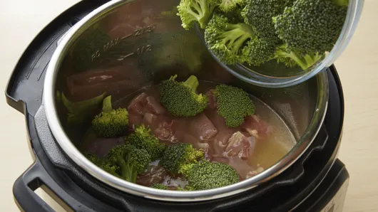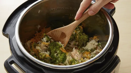 Stir in chicken and broccoli. Secure lid; set pressure valve to SEALING. Select MANUAL; cook on high pressure 10 minutes. Select CANCEL. Set pressure valve to VENTING to quick-release pressure.