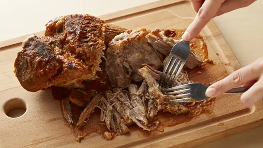 Step3Transfer pork to cutting board and shred, using two forks. Add shredded pork back to slow cooker; stir to combine. Cover, and cook on Low heat setting 10 to 15 minutes or until hot.