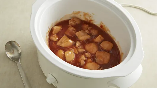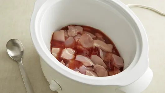 Step1In 3 1/2- to 4-quart slow cooker, combine chicken and simmer sauce; stir gently to mix.