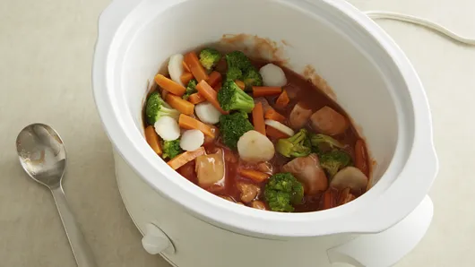 Looking for a hearty dinner with no mess? Check out this sweet and sour chicken recipe served with rice for a wonderful, five-ingredient meal that’s made in the slow cooker. Chicken, sweet-and-sour sauce and vegetables cook low and slow to create a meal that’s as easy as it is delicious.