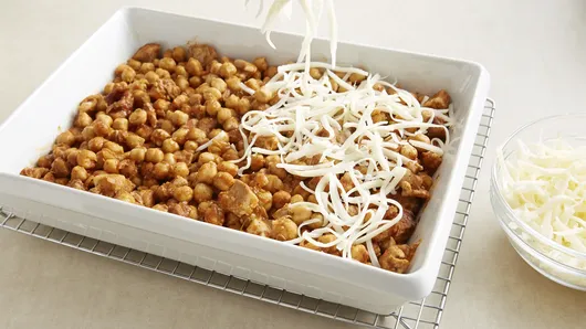 Step4Bake 25 to 30 minutes or until instant-read thermometer inserted in center of casserole reads 165°F. Top with cheese, and recover with foil. Let rest at room temperature about 5 minutes or until cheese melts. If desired, serve over rice with favorite chili toppings: chopped fresh cilantro, sliced green onions, sour cream, yogurt, salsa, guacamole.