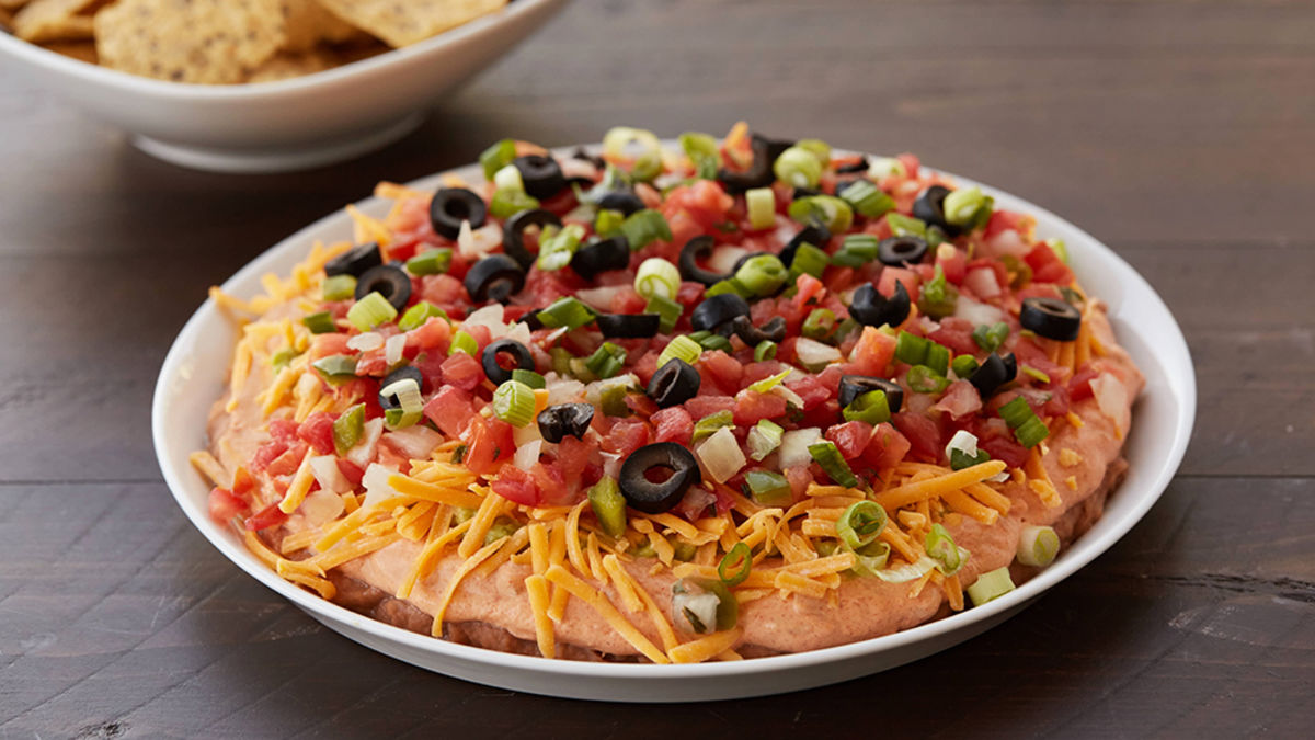 var configuration = {"title":"7-Layer Dip","introduction":"\u003cp\u003eYour guests won’t be able to get enough of this fresh spin on traditional 7 Layer Dip. We took this classic recipe up a notch with a no-fail flavor-booster: a layer of zesty pico de gallo that adds just the right kick.\u0026nbsp;\u0026nbsp;\u003c/p\u003e\u003cp\u003ePacked with classic taco night ingredients like refried beans, guacamole, sour cream, and shredded cheese, this colorful Mexican layer dip is the ultimate crowd-pleaser. It’s simple to make, easy to transport, and guaranteed to score big points at any gathering.\u0026nbsp;\u0026nbsp;\u003c/p\u003e\u003cp\u003eWhether you’re hosting at home or sharing with friends outside the stadium, it’s one of those tailgating foods that disappears fast—so you might want to double the recipe!\u0026nbsp;\u003c/p\u003e","servingSize":"About 1/4 Cup ","image":{"small":{"media":"(min-width: 0px)","src":"https://mojo.generalmills.com/api/public/content/Gb0OoghESkOzUYww2773Mg_webp_base.webp?v=d2372903\u0026t=e724eca7b3c24a8aaa6e089ed9e611fd"},"medium":{"media":"(min-width: 500px)","src":"https://mojo.generalmills.com/api/public/content/Gb0OoghESkOzUYww2773Mg_webp_base.webp?v=d2372903\u0026t=191ddcab8d1c415fa10fa00a14351227"},"large":{"media":"(min-width: 767px)","src":"https://mojo.generalmills.com/api/public/content/Gb0OoghESkOzUYww2773Mg_webp_base.webp?v=d2372903\u0026t=191ddcab8d1c415fa10fa00a14351227"},"alt":"7-Layer Dip"},"contributor":{"label":"By","name":"Edited by Joanna","profileUrl":"/about-us/joanna","displayDate":{"label":"Updated","date":"Jul 22, 2025"}},"ingredientGroups":[{"ingredients":[{"quantity":"1 1/2","description":"cups sour cream"},{"quantity":"1","description":"packet (1 oz) Old El Paso™ Original Taco Seasoning Mix"},{"quantity":"1","description":"can (4 oz) Old El Paso™ Chopped Green Chiles"},{"quantity":"1","description":"can (16 oz) Old El Paso™ Traditional Refried Beans"},{"quantity":"1","description":"package (8 oz) refrigerated guacamole"},{"quantity":"1 1/2","description":"cups finely shredded Cheddar cheese (6 oz)"},{"quantity":"1","description":"cup pico de gallo"},{"quantity":"1","description":"can (2.25 oz) sliced ripe olives, drained"},{"quantity":"1/4","description":"cup sliced green onions"},{"quantity":"","description":"Tortilla chips, as desired"}]}],"steps":[{"description":"\u003cp\u003eIn small bowl, mix sour cream, taco seasoning mix, and green chiles.\u0026nbsp;\u0026nbsp;\u003c/p\u003e","stepShotImageUrl":"//mojo.generalmills.com/api/public/content/2Kkm7ifCRQyTsc6gftRigg_webp_base.webp?v=13a36526\u0026t=51a43a57af4046789e5a7f20567b1195"},{"description":"\u003cp\u003eSpread refried beans on 12- to 14-inch round platter or plate.\u0026nbsp;\u003c/p\u003e","stepShotImageUrl":"//mojo.generalmills.com/api/public/content/HFT-IZCCTNm769ACln98lg_webp_base.webp?v=9b0ae903\u0026t=51a43a57af4046789e5a7f20567b1195"},{"description":"\u003cp\u003eSpread sour cream mixture over beans.\u003c/p\u003e","stepShotImageUrl":"//mojo.generalmills.com/api/public/content/hRHttx01TBOjYSlLGzV4Gw_webp_base.webp?v=1080f1f7\u0026t=51a43a57af4046789e5a7f20567b1195"},{"description":"\u003cp\u003eCarefully spread guacamole on top of sour cream mixture.\u0026nbsp;\u003c/p\u003e","stepShotImageUrl":"//mojo.generalmills.com/api/public/content/idprnTlfRfa1QkVONCVxeQ_webp_base.webp?v=0390b004\u0026t=51a43a57af4046789e5a7f20567b1195"},{"description":"\u003cp\u003eTop with cheddar cheese, pico de gallo, olives, and green onions. Cover and refrigerate until serving.\u0026nbsp;\u003c/p\u003e","stepShotImageUrl":"//mojo.generalmills.com/api/public/content/7SYpO_xSQvqZfKxWsDNgHw_webp_base.webp?v=a22d7ec9\u0026t=51a43a57af4046789e5a7f20567b1195"},{"description":"\u003cp\u003eServe with tortilla chips.\u0026nbsp;\u003c/p\u003e","stepShotImageUrl":"//mojo.generalmills.com/api/public/content/4zl8oeb7Rxut5kO_FCuNlw_webp_base.webp?v=b37b7eee\u0026t=51a43a57af4046789e5a7f20567b1195"}],"tips":[{"title":"","description":"This fresh take on 7 layer dip with pico de gallo and zesty seasoned sour cream is perfect for parties and one of our favorite tailgating foods.\u0026nbsp;","category":"Rich Snippet","tipShots":[]},{"title":"","description":"Top your homemade 7-Layer Dip with your favorite ingredients like chopped cilantro and diced jalapeño chiles.","category":"Recipe/Ingredient Facts","tipShots":[]},{"title":"","description":"Store your 7-layer taco dip loosely covered in the refrigerator.","category":"Storage","tipShots":[]},{"title":"","description":"\u003cp\u003eIf desired, you can swap in Greek yogurt for the sour cream.\u0026nbsp;\u003c/p\u003e","category":"Substitution","tipShots":[]},{"title":"TIP FROM THE Doughboy ","description":"\u003cp\u003eLooking for extra spice? Swap in spicy pico de gallo instead of mild!\u0026nbsp;\u003c/p\u003e","category":"Pillsbury Highlight","tipShots":[]},{"title":"","description":"Kitchen Tested - 1/2017.","category":"Kitchen Tested","tipShots":[]}],"kitchenTips":[{"title":"","description":"Top your homemade 7-Layer Dip with your favorite ingredients like chopped cilantro and diced jalapeño chiles.","category":"Recipe/Ingredient Facts","tipShots":[]},{"title":"","description":"Store your 7-layer taco dip loosely covered in the refrigerator.","category":"Storage","tipShots":[]},{"title":"","description":"\u003cp\u003eIf desired, you can swap in Greek yogurt for the sour cream.\u0026nbsp;\u003c/p\u003e","category":"Substitution","tipShots":[]}],"additionalContent":[{"title":"Recipe Ingredients ","description":"\u003cp\u003eSimple, fresh ingredients come together for a Mexican-inspired party snack that’s always a hit. Here’s what you need to build this flavorful 7-layer dip.\u0026nbsp;\u003c/p\u003e\u003cp\u003e\u003cstrong\u003eOld El Paso™ Original Taco Seasoning Mix:\u003c/strong\u003e This adds classic taco flavor and is the secret behind the savory seasoned sour cream in this recipe.\u0026nbsp;\u003c/p\u003e\u003cp\u0