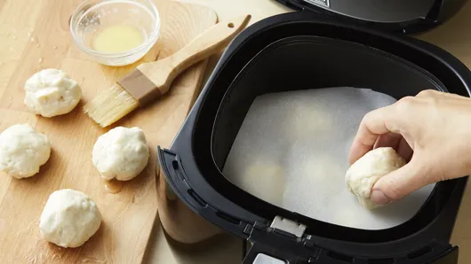 var configuration = {"title":"Air Fryer Apple Fritters","introduction":"Skip the bakery, and make these easy Air Fryer Apple Fritters at home! Made with just five ingredients, including Pillsbury™ biscuits, these apple pie-stuffed treats make for a quick breakfast or easy dessert. Next time your family is craving a sweet fall dessert after a delicious meal, give fabulous apple fritters in the air fryer a shot.","servingSize":"1 Fritter","image":{"small":{"media":"(min-width: 0px)","src":"https://mojo.generalmills.com/api/public/content/frBh49TzS0Sjpk1F1KFgMQ_webp_base.webp?v=95041544\u0026t=e724eca7b3c24a8aaa6e089ed9e611fd"},"medium":{"media":"(min-width: 500px)","src":"https://mojo.generalmills.com/api/public/content/frBh49TzS0Sjpk1F1KFgMQ_webp_base.webp?v=95041544\u0026t=191ddcab8d1c415fa10fa00a14351227"},"large":{"media":"(min-width: 767px)","src":"https://mojo.generalmills.com/api/public/content/frBh49TzS0Sjpk1F1KFgMQ_webp_base.webp?v=95041544\u0026t=191ddcab8d1c415fa10fa00a14351227"},"alt":"Air Fryer Apple Fritters"},"contributor":{"label":"By","name":"Pillsbury Kitchens","profileUrl":"/about-us","displayDate":{"label":"Updated","date":"Dec 4, 2020"}},"ingredientGroups":[{"ingredients":[{"quantity":"1/2","description":"cup sugar"},{"quantity":"1/2","description":"teaspoon ground cinnamon"},{"quantity":"1","description":"cup chopped peeled apple (1 medium)"},{"quantity":"1","description":"can (10.2 oz) refrigerated Pillsbury™ Grands!™ Southern Homestyle Buttermilk Biscuits (5 Count)","productLink":"/products/biscuits/grands-refrigerated-biscuits/homestyle-buttermilk"},{"quantity":"3","description":"tablespoons butter, melted"}]}],"steps":[{"description":"Cut two 8-inch rounds of cooking parchment paper. Place one round in bottom of air fryer basket. Spray with cooking spray."},{"description":"In small bowl, mix sugar and cinnamon. In another small bowl, mix chopped apple and 2 tablespoons of the cinnamon-sugar until well mixed.","stepShotImageUrl":"//mojo.generalmills.com/api/public/content/PQyf5HLI_UCW3YCVb_NfpQ_webp_base.webp?v=9d2af80d\u0026t=51a43a57af4046789e5a7f20567b1195"},{"description":"Separate dough into 5 biscuits; separate each biscuit into 2 layers. Press each into 4-inch round. Spoon 1 heaping tablespoonful of the apples into center of each round. Gently fold edges up and over filling; pinch to seal. Brush biscuits on all sides with 2 tablespoons of the melted butter.","stepShotImageUrl":"//mojo.generalmills.com/api/public/content/krYfN7WHoky4-ZjAjfYC-Q_webp_base.webp?v=cbd6b1da\u0026t=51a43a57af4046789e5a7f20567b1195"},{"description":"Place 5 of the biscuits, seam sides down, on parchment in air fryer basket. Spray both sides of the second parchment round with cooking spray. Top biscuits in basket with second parchment round, then top with remaining 5 biscuits.","stepShotImageUrl":"//mojo.generalmills.com/api/public/content/zI1M_TZFb0CYDU4Nq6wDUw_webp_base.webp?v=d13dbea3\u0026t=51a43a57af4046789e5a7f20567b1195"},{"description":"Set to 325°F; cook 8 minutes. Remove top parchment round; using tongs, carefully turn biscuits, and place in basket in single layer. Cook 4 to 6 minutes longer or until cooked through and apples are tender. Brush biscuits with remaining 1 tablespoon melted butter; roll in remaining cinnamon-sugar.\n\n","stepShotImageUrl":"//mojo.generalmills.com/api/public/content/Eu-QwetlWE-XUFsHCx8wGg_webp_base.webp?v=91c64234\u0026t=51a43a57af4046789e5a7f20567b1195"}],"tips":[{"title":"","description":"Air fryer temperature control settings vary according to brand and model. If your air fryer does not have the exact temperature setting called for in the recipe, consult your manual for suggested temperature settings.","category":"Techniques","tipShots":[]},{"title":"","description":"Our recipes do not call for preheating your air fryer. Just set the temperature, and start. Never preheat with parchment paper alone.","category":"Techniques","tipShots":[]},{"title":"","description":"Take care to seal the dough completely around the filling before placing in the air fryer.","category":"Techniques","tipShots":[]},{"title":"","description":"Serve warm fritters with ice cream for a simple-yet-special dessert.","category":"Serving Suggestions/Menu","tipShots":[]},{"title":"","description":"Kitchen Tested - 6/2019","category":"Kitchen Tested","tipShots":[]}],"kitchenTips":[{"title":"","description":"Air fryer temperature control settings vary according to brand and model. If your air fryer does not have the exact temperature setting called for in the recipe, consult your manual for suggested temperature settings.","category":"Techniques","tipShots":[]},{"title":"","description":"Our recipes do not call for preheating your air fryer. Just set the temperature, and start. Never preheat with parchment paper alone.","category":"Techniques","tipShots":[]},{"title":"","description":"Take care to seal the dough completely around the filling before placing in the air fryer.","category":"Techniques","tipShots":[]},{"title":"","description":"Serve warm fritters with ice cream for a simple-yet-special dessert.","category":"Serving Suggestions/Menu","tipShots":[]}],"additionalContent":[],"faq":[],"tipCategories":[{"categoryName":"Kitchen Tested","heading":"More About This Recipe","cssClass":"recipePartStory","expandOnInit":false,"expandText":"More +","collapseText":"Less -","expandEventName":"","collapseEventName":"","image":"","tips":[{"title":"","description":"Kitchen Tested - 6/2019","category":"Kitchen Tested","tipShots":[]}],"isExpandable":false}],"nutritionInfo":{"configuration":{"showAsTable":false,"noNutritionInformationAvailableMessage":"No nutrition information available for this recipe","poweredByText":"\u003cp\u003eNutrition information for this recipe is estimated using a leading nutrition calculation application, but is an estimate only. Actual nutrition values will vary based on the exact ingredients or brands you may use.\u003c/p\u003e\n\u003ca href=\u0022h