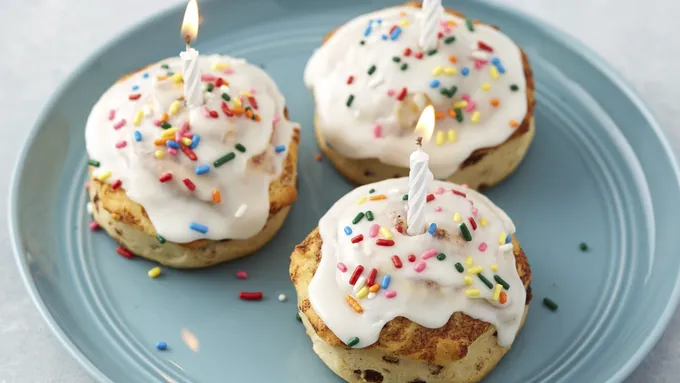 var configuration = {"title":"Air Fryer Birthday Cake Cinnamon Rolls","introduction":"Start your day in a delicious way with warm cinnamon rolls topped with a sweet frosting, sugar cookie dough crumbles and colorful sprinkles. While the final presentation is over-the-top impressive, you’ll jump for joy at how easy this recipe is—you can have warm, extra-special cinnamon rolls on the table in under an hour. You don’t have to save these Air Fryer Birthday Cake Cinnamon Rolls just for breakfast, either. They could easily be the sweet treat at a birthday party or other special occasion!","servingSize":"1 Roll","image":{"small":{"media":"(min-width: 0px)","src":"https://mojo.generalmills.com/api/public/content/98EyHbXbEUm5eWmDpzlJbQ_webp_base.webp?v=bf2d9095\u0026t=e724eca7b3c24a8aaa6e089ed9e611fd"},"medium":{"media":"(min-width: 500px)","src":"https://mojo.generalmills.com/api/public/content/98EyHbXbEUm5eWmDpzlJbQ_webp_base.webp?v=bf2d9095\u0026t=191ddcab8d1c415fa10fa00a14351227"},"large":{"media":"(min-width: 767px)","src":"https://mojo.generalmills.com/api/public/content/98EyHbXbEUm5eWmDpzlJbQ_webp_base.webp?v=bf2d9095\u0026t=191ddcab8d1c415fa10fa00a14351227"},"alt":"Air Fryer Birthday Cake Cinnamon Rolls"},"contributor":{"label":"By","name":"Pillsbury Kitchens","profileUrl":"/about-us","displayDate":{"label":"Updated","date":"Mar 17, 2022"}},"ingredientGroups":[{"ingredients":[{"quantity":"1","description":"can (17.5 oz) refrigerated Pillsbury™ Grands!™ Cinnamon Rolls with Original Icing (5 Count)","productLink":"/products/cinnamon-rolls/grands-original-cinnamon-rolls-with-icing"},{"quantity":"4","description":"oz (from 8-oz package) cream cheese, softened"},{"quantity":"1/2","description":"cup powdered sugar"},{"quantity":"5","description":"cookie dough rounds from 1 package (16 oz) refrigerated Pillsbury™ Ready to Bake!™ Sugar Cookie Dough (24 Count)","productLink":"/products/cookies/ready-to-bake-cookies/ready-to-bake-sugar-cookies"},{"quantity":"1","description":"tablespoon rainbow candy sprinkles"}]}],"steps":[{"description":"Cut two 8-inch rounds of cooking parchment paper. Place one round in bottom of air fryer basket. Spray with cooking spray."},{"description":"Separate dough into 5 rolls; set icing aside. Place 3 rolls on parchment paper in air fryer basket, spacing apart. Cover remaining rolls with plastic wrap, and refrigerate.","stepShotImageUrl":"//mojo.generalmills.com/api/public/content/JbF2-DA350KkzAJ__W_ekw_webp_base.webp?v=1d1dd637\u0026t=51a43a57af4046789e5a7f20567b1195"},{"description":"Set air fryer to 320°F; cook 12 minutes. Place a large plate over air fryer basket, and invert. Discard parchment. Carefully transfer cinnamon rolls back to air fryer, bottom side up. Cook 2 to 4 minutes or until golden brown and rolls are cooked thorough. Remove from air fryer; cover loosely with foil to keep warm while cooking second batch. Repeat for remaining 2 rolls, and place on remaining parchment round in basket of air fryer. Cook as directed above.","stepShotImageUrl":"//mojo.generalmills.com/api/public/content/qDjoxhOj1EKTZJhPsIo1DQ_webp_base.webp?v=4e943e19\u0026t=51a43a57af4046789e5a7f20567b1195"},{"description":"Meanwhile, in small bowl, place icing and cream cheese; beat with spoon until well blended. Stir in powdered sugar until mixed well. In another small bowl, crumble cookie dough rounds into small pieces. Add sprinkles, and stir until coated. Spread icing mixture on tops of warm cinnamon rolls; crumble sprinkled coated cookie dough pieces on tops. Serve warm.","stepShotImageUrl":"//mojo.generalmills.com/api/public/content/lKtVwvPJL0W9GnA9A9afPA_webp_base.webp?v=910532c8\u0026t=51a43a57af4046789e5a7f20567b1195"}],"tips":[{"title":"","description":"Air fryer temperature control settings vary according to brand and model. If your air fryer does not have the exact temperature setting called for in the recipe, consult your manual for suggested temperature settings.","category":"Recipe/Ingredient Facts","tipShots":[]},{"title":"","description":"Our recipes do not call for preheating your air fryer. Just set the temperature, and start. Never preheat with parchment paper alone.","category":"Recipe/Ingredient Facts","tipShots":[]},{"title":"","description":"We tested this recipe in a 3.7-quart air fryer. If using a larger air fryer, such as a 6-quart size, you may be able to fit more of the cinnamon rolls into one batch for cooking. Be sure to cook them in a single layer, spacing them apart, so they can cook thoroughly.","category":"Recipe/Ingredient Facts","tipShots":[]},{"title":"","description":"Short of time? Try sprinkling refrigerated Pillsbury™ Birthday Cake Cookie Dough Poppins on top of frosted cinnamon rolls instead of sprinkled crumbled cookie dough.","category":"Substitution","tipShots":[]},{"title":"","description":"Kitchen Tested: 1/2022.","category":"Kitchen Tested","tipShots":[]}],"kitchenTips":[{"title":"","description":"Air fryer temperature control settings vary according to brand and model. If your air fryer does not have the exact temperature setting called for in the recipe, consult your manual for suggested temperature settings.","category":"Recipe/Ingredient Facts","tipShots":[]},{"title":"","description":"Our recipes do not call for preheating your air fryer. Just set the temperature, and start. Never preheat with parchment paper alone.","category":"Recipe/Ingredient Facts","tipShots":[]},{"title":"","description":"We tested this recipe in a 3.7-quart air fryer. If using a larger air fryer, such as a 6-quart size, you may be able to fit more of the cinnamon rolls into one batch for cooking. Be sure to cook them in a single layer, spacing them apart, so they can cook thoroughly.","category":"Recipe/Ingredient Facts","tipShots":[]},{"title":"","description":"Short of time? Try sprinkling refrigerated Pillsbury™ Birthday Cake Cookie Dough Poppins on top of frosted cinnamon rolls instead of sprinkled crumbled cookie dough.","category":"S