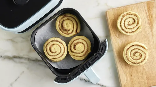 var configuration = {"title":"Air Fryer Caramel Rolls","introduction":"Caramel rolls have never been simpler to make! When cooked in the air fryer, these quick and easy caramel rolls make for a sweet start to your morning. We love that you can prep them in just 10 minutes, giving you plenty of time to tackle your other morning to-dos. These quick caramel rolls would also make a delicious mid-afternoon snack or post-dinner treat.","servingSize":"1 Roll","image":{"small":{"media":"(min-width: 0px)","src":"https://mojo.generalmills.com/api/public/content/osUSKBimJ0idafL9goOBCg_webp_base.webp?v=41c0cf3b\u0026t=e724eca7b3c24a8aaa6e089ed9e611fd"},"medium":{"media":"(min-width: 500px)","src":"https://mojo.generalmills.com/api/public/content/osUSKBimJ0idafL9goOBCg_webp_base.webp?v=41c0cf3b\u0026t=191ddcab8d1c415fa10fa00a14351227"},"large":{"media":"(min-width: 767px)","src":"https://mojo.generalmills.com/api/public/content/osUSKBimJ0idafL9goOBCg_webp_base.webp?v=41c0cf3b\u0026t=191ddcab8d1c415fa10fa00a14351227"},"alt":"Air Fryer Caramel Rolls"},"contributor":{"label":"By","name":"Pillsbury Kitchens","profileUrl":"/about-us","displayDate":{"label":"Updated","date":"Feb 18, 2022"}},"ingredientGroups":[{"ingredients":[{"quantity":"1","description":"can (17.5 oz) refrigerated Pillsbury™ Grands!™ Cinnamon Rolls with Original Icing (5 Count)","productLink":"/products/cinnamon-rolls/grands-original-cinnamon-rolls-with-icing"},{"quantity":"1/2","description":"cup caramel dessert sauce, room temperature"},{"quantity":"1/3","description":"cup chopped pecans"}]}],"steps":[{"description":"Cut two 8-inch rounds of cooking parchment paper. Place one round in bottom of air fryer basket. Spray with cooking spray."},{"description":"Separate dough into 5 rolls; set icing aside. Place 3 rolls on parchment paper in air fryer basket, spacing apart. Cover remaining rolls with plastic wrap, and refrigerate.","stepShotImageUrl":"//mojo.generalmills.com/api/public/content/c-oukgV2tkufEPerNVCzdQ_webp_base.webp?v=47e9e3e3\u0026t=51a43a57af4046789e5a7f20567b1195"},{"description":"Set air fryer to 320°F; cook 12 minutes. Place a large plate over air fryer basket, and invert. Discard parchment. Carefully transfer cinnamon rolls back to air fryer, bottom side up. Cook 2 to 4 minutes or until golden brown and rolls are cooked through. Remove from air fryer; cover loosely with foil to keep warm while cooking second batch. Repeat for remaining 2 rolls, and place on remaining parchment round in basket of air fryer. Cook as directed above.","stepShotImageUrl":"//mojo.generalmills.com/api/public/content/_Z7A86hhb0-Gz5hbyboN8Q_webp_base.webp?v=335d2a60\u0026t=51a43a57af4046789e5a7f20567b1195"},{"description":"Meanwhile, in small bowl, mix caramel sauce and pecans. Spread 1 teaspoon reserved icing on top of each baked roll. Top with caramel mixture. Serve warm. Serve with remaining icing.","stepShotImageUrl":"//mojo.generalmills.com/api/public/content/1MkHVkxjxkKW5qfTsPm7gw_webp_base.webp?v=0d476e18\u0026t=51a43a57af4046789e5a7f20567b1195"}],"tips":[{"title":"","description":"Air fryer temperature control settings vary according to brand and model. If your air fryer does not have the exact temperature setting called for in this quick caramel rolls recipe, consult your manual for suggested temperature settings.","category":"Recipe/Ingredient Facts","tipShots":[]},{"title":"","description":"Our recipes do not call for preheating your air fryer. Just set the temperature, and start. Never preheat with parchment paper alone.","category":"Recipe/Ingredient Facts","tipShots":[]},{"title":"","description":"We tested this recipe in a 3.7-quart air fryer. If using a larger air fryer, such as 6-quart size, you may be able to fit more of the cinnamon rolls into one batch for cooking. Be sure to cook them in a single layer, spacing them apart, so they can cook thoroughly.","category":"Recipe/Ingredient Facts","tipShots":[]},{"title":"","description":"For best results, we like to use a caramel dessert sauce which is thicker consistency than a caramel topping. Be sure to warm caramel sauce according to directions on label if not at room temperature so caramel is easier to mix and spread.","category":"Recipe/Ingredient Facts","tipShots":[]},{"title":"","description":"Kitchen Tested: 1/2022.","category":"Kitchen Tested","tipShots":[]}],"kitchenTips":[{"title":"","description":"Air fryer temperature control settings vary according to brand and model. If your air fryer does not have the exact temperature setting called for in this quick caramel rolls recipe, consult your manual for suggested temperature settings.","category":"Recipe/Ingredient Facts","tipShots":[]},{"title":"","description":"Our recipes do not call for preheating your air fryer. Just set the temperature, and start. Never preheat with parchment paper alone.","category":"Recipe/Ingredient Facts","tipShots":[]},{"title":"","description":"We tested this recipe in a 3.7-quart air fryer. If using a larger air fryer, such as 6-quart size, you may be able to fit more of the cinnamon rolls into one batch for cooking. Be sure to cook them in a single layer, spacing them apart, so they can cook thoroughly.","category":"Recipe/Ingredient Facts","tipShots":[]},{"title":"","description":"For best results, we like to use a caramel dessert sauce which is thicker consistency than a caramel topping. Be sure to warm caramel sauce according to directions on label if not at room temperature so caramel is easier to mix and spread.","category":"Recipe/Ingredient Facts","tipShots":[]}],"additionalContent":[],"faq":[],"tipCategories":[{"categoryName":"Kitchen Tested","heading":"More About This Recipe","cssClass":"recipePartStory","expandOnInit":false,"expandText":"More +","collapseText":"Less -","expandEventName":"","collapseEventName":"","image":"","tips":[{"title":"","description":"Kitchen Tested: 1/2022.","category":"Kitchen Tested","tipShots":[]}],"isExpandable":false}],"nutritionInfo":{"configuration