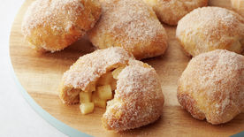 Shake warm bites in cinnamon-sugar. Serve warm with dipping icing.