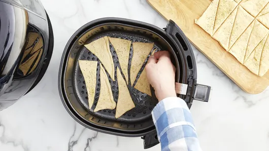 Step2Spray 5.8- to 6-quart air fryer basket with cooking spray. Arrange 8 dough triangles in air fryer. Set air fryer to 380°F; cook 2 to 4 minutes or until golden brown. Repeat twice with remaining crescent triangles.