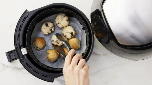 var configuration = {"title":"Air Fryer Peanut Butter and Jelly Biscuit Bombs","introduction":"If PB\u0026J is a family favorite, you\u0027ll love these easy Air Fryer Peanut Butter and Jelly Biscuit Bombs. Pillsbury™ Blueberry Sweet Biscuits dough is wrapped around sweet peanut butter filling and baked to perfection. Top with a drizzle of jam and icing, and this easily becomes your next favorite 2-bite breakfast or afternoon snack! It\u0027s the air fryer PB\u0026J that\u0027s sure to have your kids begging for more.","servingSize":"2 Biscuit Bombs","image":{"small":{"media":"(min-width: 0px)","src":"https://mojo.generalmills.com/api/public/content/D9lLz2AeNEKfysNSu42S4A_webp_base.webp?v=e371404e\u0026t=e724eca7b3c24a8aaa6e089ed9e611fd"},"medium":{"media":"(min-width: 500px)","src":"https://mojo.generalmills.com/api/public/content/D9lLz2AeNEKfysNSu42S4A_webp_base.webp?v=e371404e\u0026t=191ddcab8d1c415fa10fa00a14351227"},"large":{"media":"(min-width: 767px)","src":"https://mojo.generalmills.com/api/public/content/D9lLz2AeNEKfysNSu42S4A_webp_base.webp?v=e371404e\u0026t=191ddcab8d1c415fa10fa00a14351227"},"alt":"Air Fryer Peanut Butter and Jelly Biscuit Bombs"},"contributor":{"label":"By","name":"Pillsbury Kitchens","profileUrl":"/about-us","displayDate":{"label":"Updated","date":"Jun 21, 2021"}},"ingredientGroups":[{"ingredients":[{"quantity":"2","description":"oz cream cheese, softened (from 8-oz package)"},{"quantity":"3","description":"tablespoons creamy peanut butter"},{"quantity":"3","description":"tablespoons powdered sugar"},{"quantity":"1","description":"can (12.4 oz) refrigerated Pillsbury™ Blueberry flavored Sweet Biscuits with Icing (8 Count)","productLink":"/products/biscuits/sweet-biscuits/sweet-biscuits-blueberry"},{"quantity":"2","description":"tablespoons seedless strawberry or grape jelly"}]}],"steps":[{"description":"Cut two 8-inch rounds of cooking parchment paper. Place one round in bottom of air fryer basket. Spray with cooking spray.","stepShotImageUrl":"//mojo.generalmills.com/api/public/content/zj3R4xjGw0iWrtrCFLEcpw_webp_base.webp?v=b00a1de6\u0026t=51a43a57af4046789e5a7f20567b1195"},{"description":"In small bowl, mix cream cheese, peanut butter and powdered sugar until mixed well; set aside."},{"description":"Separate dough into 8 biscuits; set icing aside. Split each biscuit in half to make 16 biscuit rounds. Press each biscuit into 3-inch round. Spoon 1 heaping teaspoon of the cream cheese mixture into center of each round. Gently fold edges up and over filling; pinch to seal completely. Roll into ball shapes.","stepShotImageUrl":"//mojo.generalmills.com/api/public/content/FZuEHDuRZ0G6a_c7Q98MAA_webp_base.webp?v=88eafd65\u0026t=51a43a57af4046789e5a7f20567b1195"},{"description":"Place 8 biscuit bombs, seam sides down, in single layer and spacing slightly apart on parchment in air fryer basket."},{"description":"Set air fryer to 325°F; bake 6 minutes. Using tongs, carefully turn biscuit bombs, and place in basket in single layer. Bake 4 to 5 minutes longer or until dough is baked through and golden brown. Remove from air fryer to serving platter; cover loosely with foil to keep warm while baking second batch. Repeat for remaining biscuit bombs, and place on remaining parchment round in basket of air fryer. Bake as directed above.","stepShotImageUrl":"//mojo.generalmills.com/api/public/content/rSCmelGglU6BZI191wzxCQ_webp_base.webp?v=32670372\u0026t=51a43a57af4046789e5a7f20567b1195"},{"description":"In two separate small microwavable bowls, microwave jelly and biscuit icing separately uncovered on High 5 to 10 seconds or until stirred smooth and thin enough to drizzle. Before serving, drizzle biscuit bombs with jam and icing.","stepShotImageUrl":"//mojo.generalmills.com/api/public/content/fJrMjxGTyU66f8vh-hCwSg_webp_base.webp?v=3290ce9e\u0026t=51a43a57af4046789e5a7f20567b1195"}],"tips":[{"title":"","description":"Our recipes do not call for preheating your air fryer. Just set the temperature, and start. Never preheat with parchment paper alone. Air fryers vary in size and settings. If using larger air fryer, such as a 7-quart size, you may be able to bake all biscuit bombs in one batch. Be sure you bake them in a single layer, with enough room to turn them over.","category":"Method Note","tipShots":[]},{"title":"","description":"Air fryer temperature control settings vary according to brand and model. If your air fryer does not have the exact temperature setting called for in the recipe, consult your manual for suggested temperature settings.","category":"Recipe/Ingredient Facts","tipShots":[]},{"title":"","description":"Be sure to fully enclose the filling by pinching seams together and rolling them into a ball before baking for the best results.","category":"Techniques","tipShots":[]},{"title":"","description":"Since the sweet peanut butter filling is very hot after baking in the air fryer, be sure to cool at least 5 minutes before enjoying. For young kids, you may even cut them in half to help them cool off a bit before eating.","category":"Family/Kids","tipShots":[]},{"title":"","description":"Did your family love these Air Fryer Peanut Butter and Jelly Biscuit Bombs? Check out these \u003ca href=\u0022https://www.pillsbury.com/recipes/air-fryer-bacon-and-egg-breakfast-biscuit-bombs/c8244836-4327-49fb-8418-9c34a02d009c\u0022\u003eAir Fryer Bacon and Egg Breakfast Biscuit Bombs\u003c/a\u003e.","category":"External Links","tipShots":[]},{"title":"","description":"Kitchen Tested - 3/2021.","category":"Kitchen Tested","tipShots":[]}],"kitchenTips":[{"title":"","description":"Our recipes do not call for preheating your air fryer. Just set the temperature, and start. Never preheat with parchment paper alone. Air fryers vary in size and settings. If using larger air fryer, such as a 7-quart size, you may be able to bake all biscuit bombs in one batch. Be sure you bake them in a single layer, with enough room to turn them over.","category":"Method Note","tipShots":[