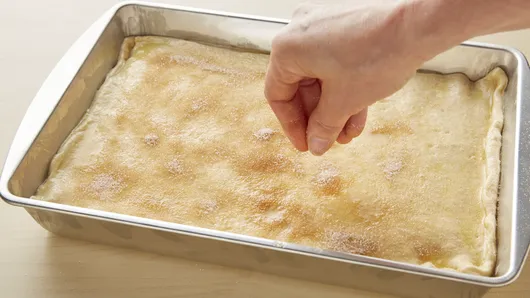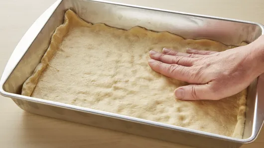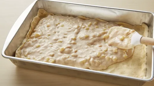 Heat oven to 350°F. Unroll 1 dough sheet, and place in ungreased 13x9-inch (3-quart) glass baking dish, stretching to cover and firmly pressing dough to cover bottom.