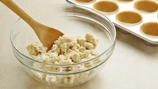 Step3Add egg, applesauce, remaining 1/2 teaspoon cinnamon and the baking powder. (DO NOT EAT RAW COOKIE DOUGH AFTER COMBINING WITH EGG.) Beat with electric mixer on medium speed about 1 minute or until well blended. Stir in apples. Divide batter evenly among muffin cups.
