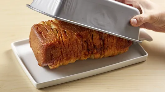 Step6Bake 40 minutes or until top is golden brown. Remove pan from oven to cooling rack; cool 15 minutes. Place serving plate upside down over pan; turn plate and pan over. Remove pan; serve warm. Refrigerate any remaining bread in airtight container up to 3 days.