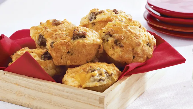 Step2Beat baking mix, cinnamon, milk and egg in small bowl, using wire whisk or fork, until smooth. Stir in apple. Pour into baking dish. Arrange sausages on top.