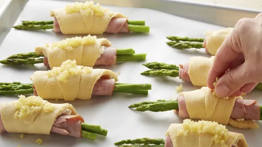 Fresh asparagus and thinly sliced ham get wrapped up in Pillsbury™ Crescent Rolls with Boursin® cheese for a showstopping side dish you’ll want to make again and again. Each bundle is sprinkled with bread crumbs and Parmesan cheese before baking for a perfectly crispy finish. Bring a platter of Asparagus and Ham Crescent Bundles to a gathering for an easy app, or serve them at home—and watch them get gobbled up.