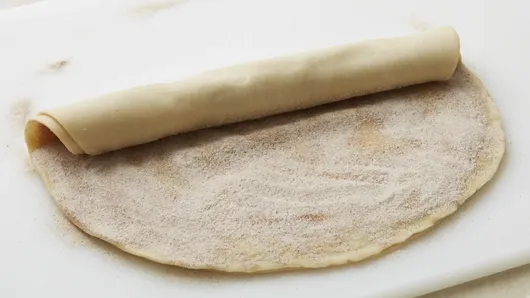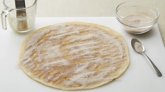 Step4Top with second crust. Brush top of second crust with butter, sprinkle with remaining cinnamon sugar; roll up.