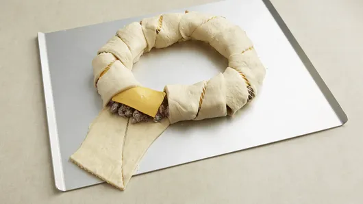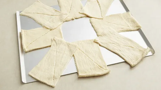 Step2Unroll both cans of dough; separate into 8 rectangles. On ungreased large cookie sheet, arrange rectangles in ring so short sides of rectangles form a 5-inch circle in center. Dough will overlap.