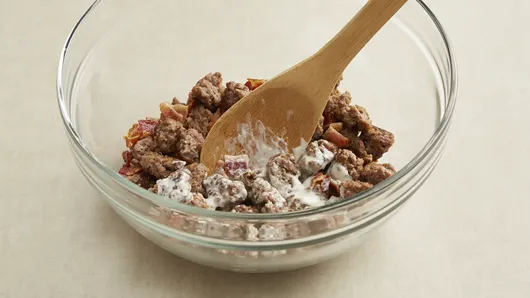 Step1Heat oven to 375°F (350°F for dark or nonstick cookie sheet). In small bowl, mix cooked beef, ranch dressing and bacon.