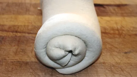 Step2Unroll 1 pizza crust. Brush some of the remaining melted butter in thin, even layer over dough. Sprinkle with 1 teaspoon garlic powder. Unroll second pizza crust over dough. Gently roll up both crusts into log.