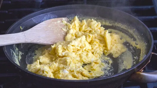 Step3In small bowl, beat 6 eggs with whisk. Add salt and pepper to taste. In large skillet, scramble eggs over medium-low heat, stirring constantly, until fluffy and just under done. Eggs should be shiny but not wet (they’ll finish cooking in the oven).