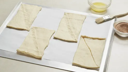 Step2If using crescent rolls: Unroll dough; separate into 4 rectangles. Press each to 6x4-inch rectangle, pressing perforations to seal. If using dough sheet: Unroll dough; cut into 4 rectangles. Press each to 6x4-inch rectangle.