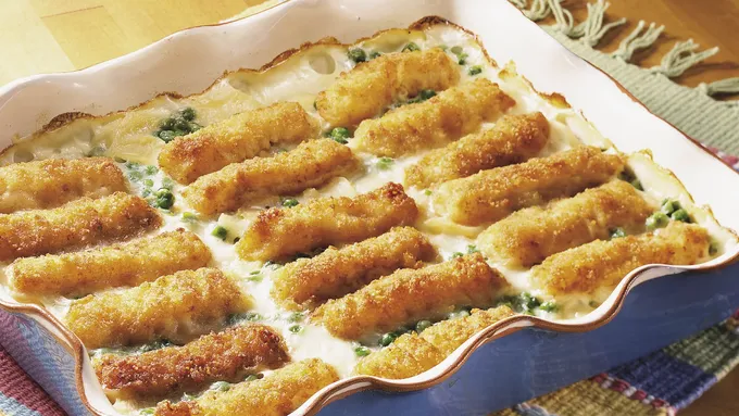 Step2Cut loaf of dough crosswise into 4 pieces to make buns. Place dough pieces seam sides down and 2 inches apart on cookie sheet. With sharp knife, cut 2 diagonal slashes, 1/2 inch deep, on top of each. Place fish sticks on cookie sheet next to dough.