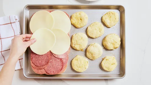 var configuration = {"title":" Baked Italian Grinder Sliders","introduction":"\u003cp\u003eWarm, cheesy biscuit sliders capture the essence of an Italian sub—made easy with Pillsbury™ Grands!™ biscuits. Think of them as a fun twist on the \u0022Italian grinder,\u0022 a hearty and flavorful sandwich popular in New England, packed with classic Italian ingredients. Layer your favorite deli meats and cheese onto the biscuits, then top with a quick, zesty salad for a crisp-and-cool contrast. The best part? It all comes together in just 35 minutes. Quick, savory, and downright irresistible—these are going to fly off the table.\u003c/p\u003e","servingSize":"2 Sliders","image":{"small":{"media":"(min-width: 0px)","src":"https://mojo.generalmills.com/api/public/content/jQmV6PVUS1-dGJM2irAueQ_webp_base.webp?v=1aa9e3ec\u0026t=e724eca7b3c24a8aaa6e089ed9e611fd"},"medium":{"media":"(min-width: 500px)","src":"https://mojo.generalmills.com/api/public/content/jQmV6PVUS1-dGJM2irAueQ_webp_base.webp?v=1aa9e3ec\u0026t=191ddcab8d1c415fa10fa00a14351227"},"large":{"media":"(min-width: 767px)","src":"https://mojo.generalmills.com/api/public/content/jQmV6PVUS1-dGJM2irAueQ_webp_base.webp?v=1aa9e3ec\u0026t=191ddcab8d1c415fa10fa00a14351227"},"alt":" Baked Italian Grinder Sliders"},"contributor":{"label":"By","name":"Created by Kyra","profileUrl":"/about-us/kyra","displayDate":{"label":"Updated","date":"Mar 6, 2026"}},"ingredientGroups":[{"ingredients":[{"quantity":"3","description":"tablespoons butter, melted"},{"quantity":"1","description":"teaspoon garlic powder"},{"quantity":"1/4","description":"teaspoon kosher salt"},{"quantity":"1","description":"can (16.3 oz) refrigerated Pillsbury™ Grands!™ Southern Homestyle Original Biscuits (8 count)","productLink":"/products/biscuits/grands-refrigerated-biscuits/homestyle-orginal"},{"quantity":"3","description":"tablespoons Italian dressing"},{"quantity":"1","description":"tablespoon mayonnaise"},{"quantity":"3","description":"cups shredded iceberg lettuce"},{"quantity":"1/4","description":"cup pepperoncini, sliced"},{"quantity":"8","description":"slices turkey, thinly sliced"},{"quantity":"6","description":"slices mortadella, thinly sliced"},{"quantity":"24","description":"slices salami (about 4 oz)"},{"quantity":"6","description":"slices provolone cheese"}]}],"steps":[{"description":"\u003cp\u003eHeat oven to 350°F.\u003c/p\u003e"},{"description":"\u003cp\u003eIn a small bowl, mix butter, garlic powder, and salt.\u003c/p\u003e","stepShotImageUrl":"//mojo.generalmills.com/api/public/content/UFJwoiZrR-myAfGWn2z43Q_webp_base.webp?v=4ca9de45\u0026t=51a43a57af4046789e5a7f20567b1195"},{"description":"\u003cp\u003eOpen the can of biscuits, and gently separate each biscuit in half so there are 16 rounds. On one half of a sheet pan, arrange 2 rows of 4 biscuit rounds, placing them close together so all 8 biscuits are just barely touching. These will form the base of the sandwich. Place the other 8 biscuit rounds on the other half of the sheet pan, farther apart. These will be the tops of the sliders. Brush the butter mixture over all 16 biscuit rounds. Bake the biscuits for 8 to 12 minutes, or until biscuit tops are golden brown. Remove from the oven.\u003c/p\u003e","stepShotImageUrl":"//mojo.generalmills.com/api/public/content/74YXQjjpQUS4PJ7IUD4e8A_webp_base.webp?v=1dc35fae\u0026t=51a43a57af4046789e5a7f20567b1195"},{"description":"\u003cp\u003eWhile the biscuits bake, make the salad topping. In a medium bowl, mix together the Italian dressing and mayonnaise. Add shredded lettuce and pepperoncini; gently toss until everything is evenly coated. Set the salad aside until ready to use.\u003c/p\u003e","stepShotImageUrl":"//mojo.generalmills.com/api/public/content/zgaJ1KtPSECljGJYTJwSYA_webp_base.webp?v=d4690e02\u0026t=51a43a57af4046789e5a7f20567b1195"},{"description":"\u003cp\u003eLayer the turkey, mortadella, and salami on top of the sandwich base (the 8 rounds that were placed close together). Layer provolone on top of meat. Bake for 3 to 5 minutes more, until the cheese is just starting to melt.\u003c/p\u003e","stepShotImageUrl":"//mojo.generalmills.com/api/public/content/TrLqO5E_QymCl4NKa0eb3A_webp_base.webp?v=bdde3778\u0026t=51a43a57af4046789e5a7f20567b1195"},{"description":"\u003cp\u003eRemove sheet pan from the oven, and top the cheese with salad mixture. Place remaining biscuit rounds on top of salad mixture, and cut into 8 sandwiches. Serve hot.\u003c/p\u003e","stepShotImageUrl":"//mojo.generalmills.com/api/public/content/CEVBk_h7SiCrxgj8gpGZNQ_webp_base.webp?v=e1fe881d\u0026t=51a43a57af4046789e5a7f20567b1195"}],"tips":[{"title":"","description":"All the flavors of an Italian sub—melty cheese, salty meats, and tangy salad—come together in these quick, savory biscuit sliders.","category":"Rich Snippet","tipShots":[]},{"title":"","description":"\u003cp\u003eTo help the sliders stay together, use a toothpick to secure the top in place.\u003c/p\u003e","category":"Presentation/Garnish","tipShots":[]},{"title":"","description":"\u003cp\u003eThere’s a whole world of Italian cured meats out there—not just the usual salami and prosciutto. Don’t be afraid to sample something new; many of the lesser-known varieties are surprisingly delicious, each with their own unique flavor and texture.\u003c/p\u003e","category":"Recipe/Ingredient Facts","tipShots":[]}],"kitchenTips":[{"title":"","description":"\u003cp\u003eTo help the sliders stay together, use a toothpick to secure the top in place.\u003c/p\u003e","category":"Presentation/Garnish","tipShots":[]},{"title":"","description":"\u003cp\u003eThere’s a whole world of Italian cured meats out there—not just the usual salami and prosciutto. Don’t be afraid to sample something new; many of the lesser-known varieties are surprisingly delicious, each with their own unique flavor and texture.\u003c/p\u003e","category":"Recipe/Ingredient Facts","tipShots":[]}],"additionalContent":[{"title":"Recipe Ingredients","descr