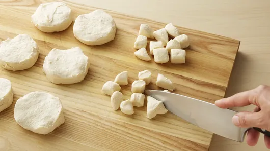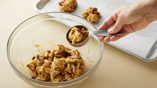 Step1Heat oven to 350°F. Line large cookie sheet with cooking parchment paper; spray with cooking spray. Separate dough into 8 biscuits; cut each biscuit into 10 pieces.