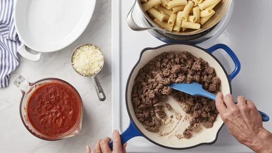 var configuration = {"title":"Baked Rigatoni with Beef","introduction":"This is a perfect recipe for a simple yet delicious meal when you’re wondering what to make for dinner. It’s a winner for your meal rotation. Keep it on hand for those nights when you want a warm, comforting supper but don’t want to devote a lot of brain power or hands-on prep to getting it on the table. Calling for minimal ingredients and simple preparation, this recipe doesn’t sacrifice on flavor or quality, making it a great choice for any skill level.\u003c/p\u003e\n\u003cp\u003eThe best part? Your family will love it! From the pickiest of eaters to the heartiest of appetites or even those loving adventurous meals, this dinner will be devoured by the entire family.\u003c/p\u003e\n\u003cp\u003eFrom busy weeknights to hosting guests, this aroma of this casserole baking in the oven will call everyone to the table. The hearty, flavorful flavor will keep them there—most likely, asking for seconds! It’s a delicious way to spend time together.\u003c/p\u003e\n\u003cp\u003eDid we mention leftovers make an easy lunch the next day? Who wouldn’t want a hot, hearty meal over a sandwich? It’s like a little hug from home. You can reheat individual portions in the microwave at work or place heated servings in an insulated food storage container. See the FAQ below for how to reheat this yummy pasta dinner.\u003c/p\u003e","servingSize":"1 Cup","image":{"small":{"media":"(min-width: 0px)","src":"https://mojo.generalmills.com/api/public/content/f1BBnodJSOydAZujOuraog_webp_base.webp?v=a103a802\u0026t=e724eca7b3c24a8aaa6e089ed9e611fd"},"medium":{"media":"(min-width: 500px)","src":"https://mojo.generalmills.com/api/public/content/f1BBnodJSOydAZujOuraog_webp_base.webp?v=a103a802\u0026t=191ddcab8d1c415fa10fa00a14351227"},"large":{"media":"(min-width: 767px)","src":"https://mojo.generalmills.com/api/public/content/f1BBnodJSOydAZujOuraog_webp_base.webp?v=a103a802\u0026t=191ddcab8d1c415fa10fa00a14351227"},"alt":"Baked Rigatoni with Beef"},"contributor":{"label":"By","name":"Pillsbury Kitchens","profileUrl":"/about-us","displayDate":{"label":"Updated","date":"Jun 25, 2024"}},"ingredientGroups":[{"ingredients":[{"quantity":"2 3/4","description":"cups uncooked rigatoni pasta (about 8 oz)"},{"quantity":"1","description":"lb ground beef (at least 80% lean)"},{"quantity":"1","description":"jar (26 oz) Muir Glen™ organic tomato basil pasta sauce"},{"quantity":"2","description":"cups shredded part-skim mozzarella cheese (8 oz)"},{"quantity":"1/2","description":"cup grated Parmesan cheese"},{"quantity":"1/4","description":"cup chopped fresh basil, if desired"}]}],"steps":[{"description":"Heat oven to 350°F. Spray 13x9-inch (3-quart) glass baking dish with cooking spray."},{"description":"Cook and drain pasta as directed on package, being careful not to overcook pasta. Return to pasta-cooking pot.","stepShotImageUrl":"//mojo.generalmills.com/api/public/content/jm3v12SxTo2SeJJjqnop6A_webp_base.webp?v=1d3f272b\u0026t=51a43a57af4046789e5a7f20567b1195"},{"description":"Meanwhile, in 10-inch skillet, cook beef over medium-high heat 5 to 7 minutes, stirring frequently, until thoroughly cooked; drain, and add to pot with pasta.","stepShotImageUrl":"//mojo.generalmills.com/api/public/content/B0eptr4eRTaQ3hAp38e1Gw_webp_base.webp?v=32106180\u0026t=51a43a57af4046789e5a7f20567b1195"},{"description":"Add pasta sauce and 1 cup of the mozzarella cheese to pot with pasta and beef; stir to combine, then pour into baking dish. ","stepShotImageUrl":"//mojo.generalmills.com/api/public/content/QkZjJq_PT8-EYgcDBXt3vg_webp_base.webp?v=5409f59d\u0026t=51a43a57af4046789e5a7f20567b1195"},{"description":"Sprinkle with remaining 1 cup mozzarella cheese and the Parmesan cheese.","stepShotImageUrl":"//mojo.generalmills.com/api/public/content/a7uQoprWQwKcc0IW17D16A_webp_base.webp?v=eae43399\u0026t=51a43a57af4046789e5a7f20567b1195"},{"description":"Cover with foil; bake 25 to 30 minutes or until casserole is at least 165°F in center. ","stepShotImageUrl":"//mojo.generalmills.com/api/public/content/vYuIGEd7QXKgOR4sA0Em4A_webp_base.webp?v=b9e3d49b\u0026t=51a43a57af4046789e5a7f20567b1195"},{"description":"Garnish with chopped basil."}],"tips":[{"title":"","description":"Our simple, family-favorite Baked Rigatoni recipe is comfort food at its best. Easy enough for anyone to make and will be devoured by all.","category":"Rich Snippet"},{"title":"","description":"For another option, you can easily replace the ground beef in this rigatoni pasta bake with ground turkey.","category":"Substitution"},{"title":"","description":"Rigatoni is a big, ridged, tubular type of pasta and is used in many saucy, cheesy pasta bakes like this baked rigatoni with meat sauce. The ridges in the noodle help catch the sauce, giving every bite a punch of flavor. If you don’t have rigatoni on hand, you can replace it with pasta noodles like penne or ziti in a pinch.","category":"Substitution"},{"title":"","description":"Serve this hearty pasta bake with a side of green salad and some \u003ca href=\u0022https://www.pillsbury.com/products/crescents\u0022 \u003ePillsbury crescent rolls\u003c/a\u003e for a full family meal.","category":"Serving Suggestions/Menu"},{"title":"","description":"If you have leftovers, you can store this dish in an airtight container and keep it in the refrigerator for 3 to 4 days. ","category":"Storage"},{"title":"","description":"The word “rigatoni” comes from the Italian word rigato, which means “ridged” or “lined,” and is often used to describe the pasta of southern and central Italy. In about an hour, this rigatoni meal including protein-rich beef and carbohydrate-loaded pasta is ready for a hearty, filling dinner. \nThere’s nothing like a warm bowl of home-cooked pasta to welcome you home after a long day. Whether you’re carb-loading for a marathon or entertaining friends for a “Notte Italiano” dinner party, you can browse through all of our