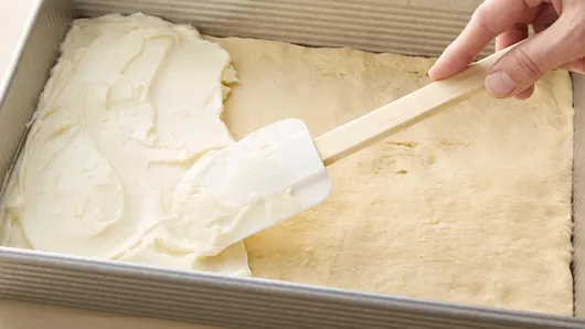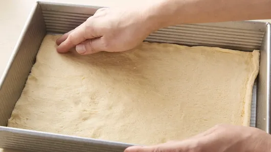 Step1Heat oven to 350°F. Unroll 1 can of dough. Place in bottom of ungreased 13x9-inch (3-quart) baking dish. Press in bottom of baking dish.