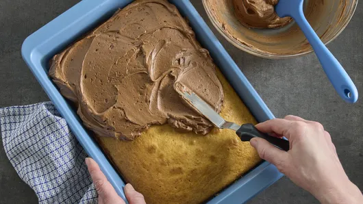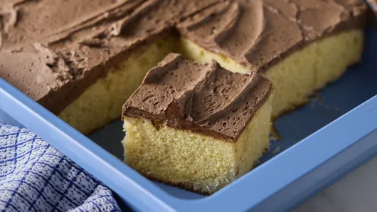 Here’s how to make this yellow cake with chocolate frosting.