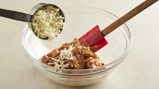 Step1Heat oven to 375°F. Cut barbecue chicken into smaller pieces. In medium bowl, mix barbecue chicken mixture and cheese.