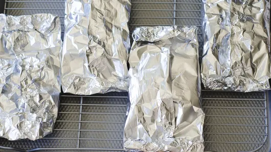 Step4Bring up 2 sides of foil over chicken so edges meet. Seal edges, making tight 1/2-inch fold; fold again, allowing space on sides for heat circulation and expansion. Fold other sides to seal.