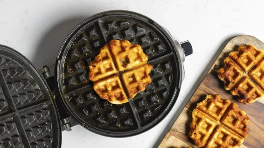 Cook the sandwiches in a waffle maker for 3 to 4 minutes, until golden brown, slightly crispy, and cooked through. The filling should register at least 165°F on an instant read thermometer. Depending on your waffle maker, you may be able to cook up to 4 waffle sandwiches at a time.
