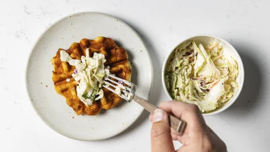 var configuration = {"title":" BBQ Pork Waffle Melt","introduction":"\u003cp\u003eIf you’ve got leftover pulled pork, we’ve got the perfect way to use it up! This pulled pork waffle grilled cheese takes the classic combo of savory cheesiness and smoky-sweet barbecue flavor to the next level. With Pillsbury™ Grands!™ Biscuits as the “bread,” every bite is crispy on the outside, soft and fluffy inside, and packed with melty cheese and tender pork. It’s an easy, fun twist that turns leftovers into something totally unique and crave-worthy!\u003c/p\u003e","servingSize":"2 Waffle Melts","image":{"small":{"media":"(min-width: 0px)","src":"https://mojo.generalmills.com/api/public/content/dDzyMmwQS3iCGEgIY5srTw_webp_base.webp?v=c416e47a\u0026t=e724eca7b3c24a8aaa6e089ed9e611fd"},"medium":{"media":"(min-width: 500px)","src":"https://mojo.generalmills.com/api/public/content/dDzyMmwQS3iCGEgIY5srTw_webp_base.webp?v=c416e47a\u0026t=191ddcab8d1c415fa10fa00a14351227"},"large":{"media":"(min-width: 767px)","src":"https://mojo.generalmills.com/api/public/content/dDzyMmwQS3iCGEgIY5srTw_webp_base.webp?v=c416e47a\u0026t=191ddcab8d1c415fa10fa00a14351227"},"alt":" BBQ Pork Waffle Melt"},"contributor":{"label":"By","name":"Created by Kyra","profileUrl":"/about-us/kyra","displayDate":{"label":"Updated","date":"Dec 19, 2025"}},"ingredientGroups":[{"ingredients":[{"quantity":"1","description":"cup leftover pulled pork (about 1/3 lb)"},{"quantity":"1/3","description":"cup barbeque sauce"},{"quantity":"1/4","description":"cup dill pickle relish"},{"quantity":"1","description":"can (16.3 oz) refrigerated Pillsbury™ Grands!™ Southern Homestyle Original Biscuits (8 count)","productLink":"/products/biscuits/grands-refrigerated-biscuits/homestyle-orginal"},{"quantity":"4","description":"slices (about 1 oz each) Monterey Jack cheese, each cut into 4 squares"},{"quantity":"1/4","description":"cup butter, melted"},{"quantity":"1/2","description":"teaspoon kosher salt"},{"quantity":"1","description":"cup prepared coleslaw"}]}],"steps":[{"description":"\u003cp\u003eHeat a waffle iron. If waffle iron has more than one heat setting, choose Medium-High.\u003c/p\u003e","stepShotImageUrl":"//mojo.generalmills.com/api/public/content/jmwtWQ5QQXKOPQzKARo4yQ_webp_base.webp?v=d1dd305e\u0026t=51a43a57af4046789e5a7f20567b1195"},{"description":"\u003cp\u003eIn a medium bowl, mix together the pulled pork, barbecue sauce, and relish. Set aside until ready to use.\u003c/p\u003e","stepShotImageUrl":"//mojo.generalmills.com/api/public/content/I1zDt8hpQz6eP-rTXX43Og_webp_base.webp?v=15c6ac18\u0026t=51a43a57af4046789e5a7f20567b1195"},{"description":"\u003cp\u003eOpen the can of biscuits, and gently separate each biscuit into two parts to get 16 rounds. On a cutting board or other surface, use your hands to gently press each round into an approximately 4-inch circle. Alternatively, use a rolling pin to roll out each round.\u003c/p\u003e","stepShotImageUrl":"//mojo.generalmills.com/api/public/content/sQyDUKciQ9KCZyf9inbylA_webp_base.webp?v=35a3b78b\u0026t=51a43a57af4046789e5a7f20567b1195"},{"description":"\u003cp\u003eEvenly distribute the pulled pork mixture onto 8 of the rounds, about 2 tablespoons each. Top each with two squares of Monterey Jack cheese. Place the remaining biscuit dough rounds on top of the cheese, covering the filling to form 8 sandwiches. Gently press down around the edges with your fingers to enclose the filling, then use the tines of a fork to crimp the sides of each sandwich and seal it closed.\u003c/p\u003e","stepShotImageUrl":"//mojo.generalmills.com/api/public/content/q2xd5uz_QvSmduco-WI2Nw_webp_base.webp?v=129e363a\u0026t=51a43a57af4046789e5a7f20567b1195"},{"description":"\u003cp\u003eIn a small bowl, mix the butter and salt. Brush the top and bottom of each biscuit sandwich with the butter mixture.\u003c/p\u003e","stepShotImageUrl":"//mojo.generalmills.com/api/public/content/m_I4XIncR_2YflJutC_k2w_webp_base.webp?v=d631134e\u0026t=51a43a57af4046789e5a7f20567b1195"},{"description":"\u003cp\u003eCook the sandwiches in a waffle maker for 3 to 4 minutes, until golden brown, slightly crispy, and cooked through. The filling should register at least 165°F on an instant read thermometer. Depending on your waffle maker, you may be able to cook up to 4 waffle sandwiches at a time.\u003c/p\u003e","stepShotImageUrl":"//mojo.generalmills.com/api/public/content/2uPK43qcQWeMm6gi2XAfXg_webp_base.webp?v=2cd1822c\u0026t=51a43a57af4046789e5a7f20567b1195"},{"description":"\u003cp\u003eTop each sandwich with coleslaw and enjoy.\u003c/p\u003e","stepShotImageUrl":"//mojo.generalmills.com/api/public/content/PCCRpAhhTKCBKIYUnIOivA_webp_base.webp?v=cb24ae16\u0026t=51a43a57af4046789e5a7f20567b1195"}],"tips":[{"title":"","description":"Smoky pulled pork and melty cheese get a fun and decadent twist in this waffle grilled cheese made with Pillsbury™ biscuits for a crispy, fluffy bite.","category":"Rich Snippet","tipShots":[]},{"title":"","description":"\u003cp\u003eDitch the knife and fork—add coleslaw on top of the waffle melt and fold like a taco around the slaw for a fun way to serve.\u003c/p\u003e","category":"Presentation/Garnish","tipShots":[]},{"title":"","description":"\u003cp\u003eFor an extra BBQ kick, add 1/2 teaspoon of your favorite BBQ spice rub to the melted butter before brushing the biscuits.\u003c/p\u003e","category":"Variation","tipShots":[]},{"title":"","description":"\u003cp\u003eWaffle irons come in many sizes, from 4-inch to 8-inch plates, and they can cook anywhere from 1 to 4 waffles at a time. The 4” biscuit rounds should fit on any sized waffle iron, but be aware that you may need to cook 1 waffle at a time, depending on your iron.\u003c/p\u003e","category":"Method Note","tipShots":[]},{"title":"","description":"\u003cp\u003eLooking for a great pulled pork recipe? Try this \u003ca href=\u0022https://www.pillsbury.com/recipes/slow-cooker-shredded-pork/b6870da6-54c9-4518-bdc4-d0b8f8e1bae8\u0022\u00
