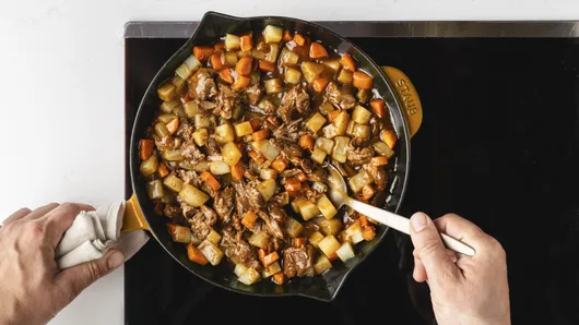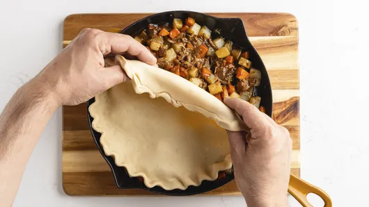 var configuration = {"title":"Beef Stew Pot Pie ","introduction":"\u003cp\u003eBeef stew meets pot pie: It’s two comfort foods in one! When you’re craving something cozy and hearty for dinner, this one-pan Beef Stew Pot Pie delivers big flavor with very little effort. It’s a deeply savory spin on classic \u003ca href=\u0022https://www.pillsbury.com/recipes/classic-chicken-pot-pie/1401d418-ac0b-4b50-ad09-c6f1243fb992\u0022\u003eChicken Pot Pie\u003c/a\u003e: tender carrots and potatoes, simple pre-cooked beef roast, rich gravy, and a hint of rosemary. Once it’s all bubbling away, it’s topped with a tender pie crust that bakes up crisp and beautiful right in the same pan. The result? A comforting skillet pot pie that’s perfect for family dinner, easy enough for weeknights, and impressive enough to serve guests.\u003c/p\u003e\u003cp\u003eThe best part: This recipe only calls for one Pillsbury™ Pie Crust, so you can use the second one to make a tasty treat for dessert, like our \u003ca href=\u0022https://www.pillsbury.com/recipes/easiest-ever-blueberry-tart/955033e2-285d-4efc-9ee4-fa61837cdf7a\u0022\u003eEasiest-Ever Blueberry Tart\u003c/a\u003e, \u003ca href=\u0022https://www.pillsbury.com/recipes/rustic-strawberry-tart-with-strawberry-cream/c6f26b83-1e82-404a-9e7a-01903c8a18c4\u0022\u003eRustic Strawberry Tart with Strawberry Cream\u003c/a\u003e, or \u003ca href=\u0022https://www.pillsbury.com/recipes/fall-pear-galette/a7496265-64f8-4480-a267-4cb675047122\u0022\u003eFall Pear Galette\u003c/a\u003e.\u003c/p\u003e","servingSize":"1 Serving","image":{"small":{"media":"(min-width: 0px)","src":"https://mojo.generalmills.com/api/public/content/L9vAc9pNRK6TRfqfmmg15Q_webp_base.webp?v=736b8795\u0026t=e724eca7b3c24a8aaa6e089ed9e611fd"},"medium":{"media":"(min-width: 500px)","src":"https://mojo.generalmills.com/api/public/content/L9vAc9pNRK6TRfqfmmg15Q_webp_base.webp?v=736b8795\u0026t=191ddcab8d1c415fa10fa00a14351227"},"large":{"media":"(min-width: 767px)","src":"https://mojo.generalmills.com/api/public/content/L9vAc9pNRK6TRfqfmmg15Q_webp_base.webp?v=736b8795\u0026t=191ddcab8d1c415fa10fa00a14351227"},"alt":"Beef Stew Pot Pie "},"contributor":{"label":"By","name":"Edited by Joanna","profileUrl":"/about-us/joanna","displayDate":{"label":"Updated","date":"Oct 24, 2025"}},"ingredientGroups":[{"ingredients":[{"quantity":"1","description":"crust from 1 box (14.1 oz) refrigerated Pillsbury™ Pie Crusts (2 Count), softened as directed on box","productLink":"/products/pie-crust/refrigerated-pie-crust"},{"quantity":"1","description":"tablespoon vegetable oil"},{"quantity":"1","description":"cup thinly sliced carrots "},{"quantity":"2","description":"medium russet potatoes, peeled and cut into 3/4-inch cubes (about 2 cups) "},{"quantity":"1","description":"package (15 oz) refrigerated cooked beef roast au jus"},{"quantity":"1","description":"jar (12 oz) beef gravy"},{"quantity":"1/2","description":"teaspoon dried rosemary leaves"},{"quantity":"","description":"Chopped fresh parsley, if desired "}]}],"steps":[{"description":"\u003cp\u003eBring crust to room temperature by removing outer package and placing on your counter for 15 minutes. Heat oven to 400°F.\u003c/p\u003e","stepShotImageUrl":"//mojo.generalmills.com/api/public/content/AbCgBpBsSwuSQW9LC3usVg_webp_base.webp?v=dedd436e\u0026t=51a43a57af4046789e5a7f20567b1195"},{"description":"\u003cp\u003eIn 11- or 12-inch ovenproof skillet, heat oil over medium heat. Cook carrots and potatoes in oil 5 to 6 minutes or until vegetables are browned and softened slightly.\u003c/p\u003e","stepShotImageUrl":"//mojo.generalmills.com/api/public/content/FJ3kETL2RIO41A_zV1LZ5g_webp_base.webp?v=d814310d\u0026t=51a43a57af4046789e5a7f20567b1195"},{"description":"\u003cp\u003eAdd beef, gravy, and rosemary; stir until well mixed, breaking up beef if necessary. Cook about 4 minutes longer or until beef and gravy are heated through.\u003c/p\u003e","stepShotImageUrl":"//mojo.generalmills.com/api/public/content/-kQOJfmkTnKB3IlpzSyweQ_webp_base.webp?v=2e6ec7d5\u0026t=51a43a57af4046789e5a7f20567b1195"},{"description":"\u003cp\u003eUnroll pie crust on work surface. Roll into 12-inch circle. If desired, flute edge. Prick with fork several times. Place pie crust on top of beef mixture in skillet.\u003c/p\u003e","stepShotImageUrl":"//mojo.generalmills.com/api/public/content/44uhF4PGSyOMbELZKQV6XQ_webp_base.webp?v=2b5ef75d\u0026t=51a43a57af4046789e5a7f20567b1195"},{"description":"\u003cp\u003eBake 20 to 25 minutes or until filling is bubbly and crust is golden brown. Sprinkle with parsley. Cut into wedges to serve. Cover and refrigerate any remaining pot pie.\u003c/p\u003e","stepShotImageUrl":"//mojo.generalmills.com/api/public/content/f_uwP4oeRN2XuZ7Rb938-A_webp_base.webp?v=2329a7cf\u0026t=51a43a57af4046789e5a7f20567b1195"}],"tips":[{"title":"","description":"Beef stew meets pot pie in this hearty, comforting one-pan weeknight skillet dinner made with cooked beef roast au jus, gravy, \u0026amp; Pillsbury™ Pie Crust.","category":"Rich Snippet","tipShots":[]},{"title":"","description":"\u003cp\u003eAdd in an extra serving of vegetables by stirring in a cup of frozen sweet peas to the meat and veggie mixture before you place the pie crust on top.\u003c/p\u003e","category":"Variation","tipShots":[]}],"kitchenTips":[{"title":"","description":"\u003cp\u003eAdd in an extra serving of vegetables by stirring in a cup of frozen sweet peas to the meat and veggie mixture before you place the pie crust on top.\u003c/p\u003e","category":"Variation","tipShots":[]}],"additionalContent":[{"title":"Recipe Ingredients","description":"\u003cp\u003eThis quick and easy one-pan meal comes together with a few of our favorite shortcut ingredients!\u003c/p\u003e\u003cp\u003e\u003cstrong\u003eRefrigerated Pillsbury™ Pie Crust:\u003c/strong\u003e Skip the pastry making and use a refrigerated crust instead. It’s easy to work with and makes a golden, flaky topping that gives this dish true pot pi