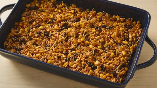 Frozen beef taquitos are the perfect topper for this flavorful, veggie-packed Southwestern casserole. Serve with all your favorite toppings, like cilantro, sour cream and green onions.