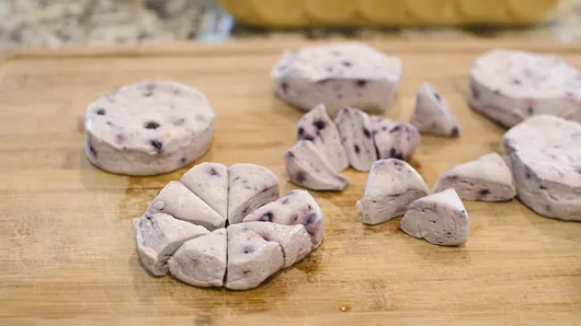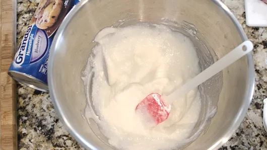 Step3Separate 1 can (16.3 oz) Pillsbury™ Grands!™ Southern Homestyle refrigerated Buttermilk biscuits into 8 biscuits. Cut each biscuit into 8 wedges. Place in bowl with cheese mixture; gently toss to coat. Fold in 2 cups mixed fresh berries. Pour into baking dish.