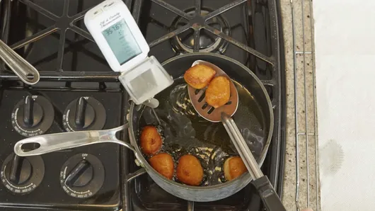 Step2In deep fryer or heavy saucepan, heat 2 inches oil to 350°F. Fry biscuit quarters, in batches, in hot oil 2 to 3 minutes or until golden brown. Drain on paper towels; sprinkle generously with powdered sugar. Serve hot.