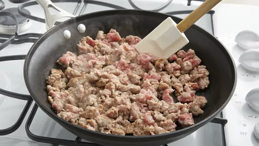 Step3In same skillet, cook sausage over medium-high heat 3 to 4 minutes, stirring occasionally, until browned and thoroughly cooked. Drain.