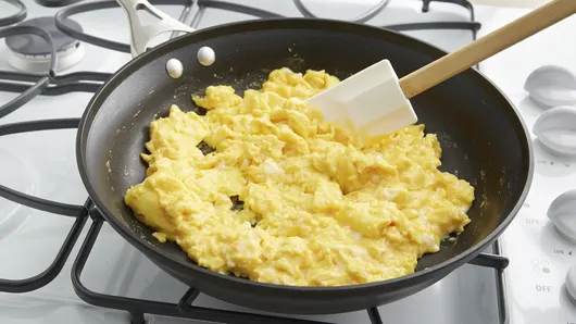 Step2In 12-inch nonstick skillet, melt butter over medium-high heat. Add eggs; cook, stirring occasionally, until eggs are firm but still moist. Remove from pan. Keep warm.